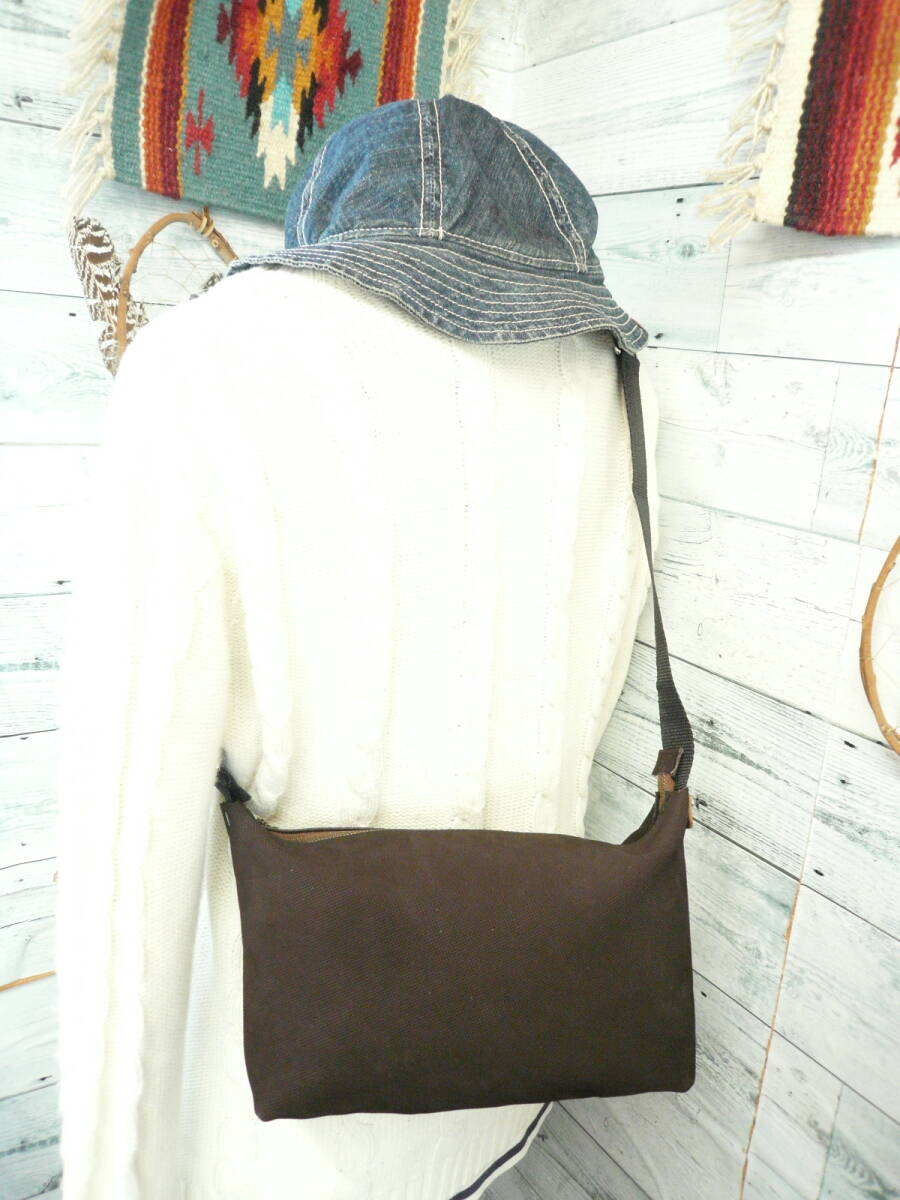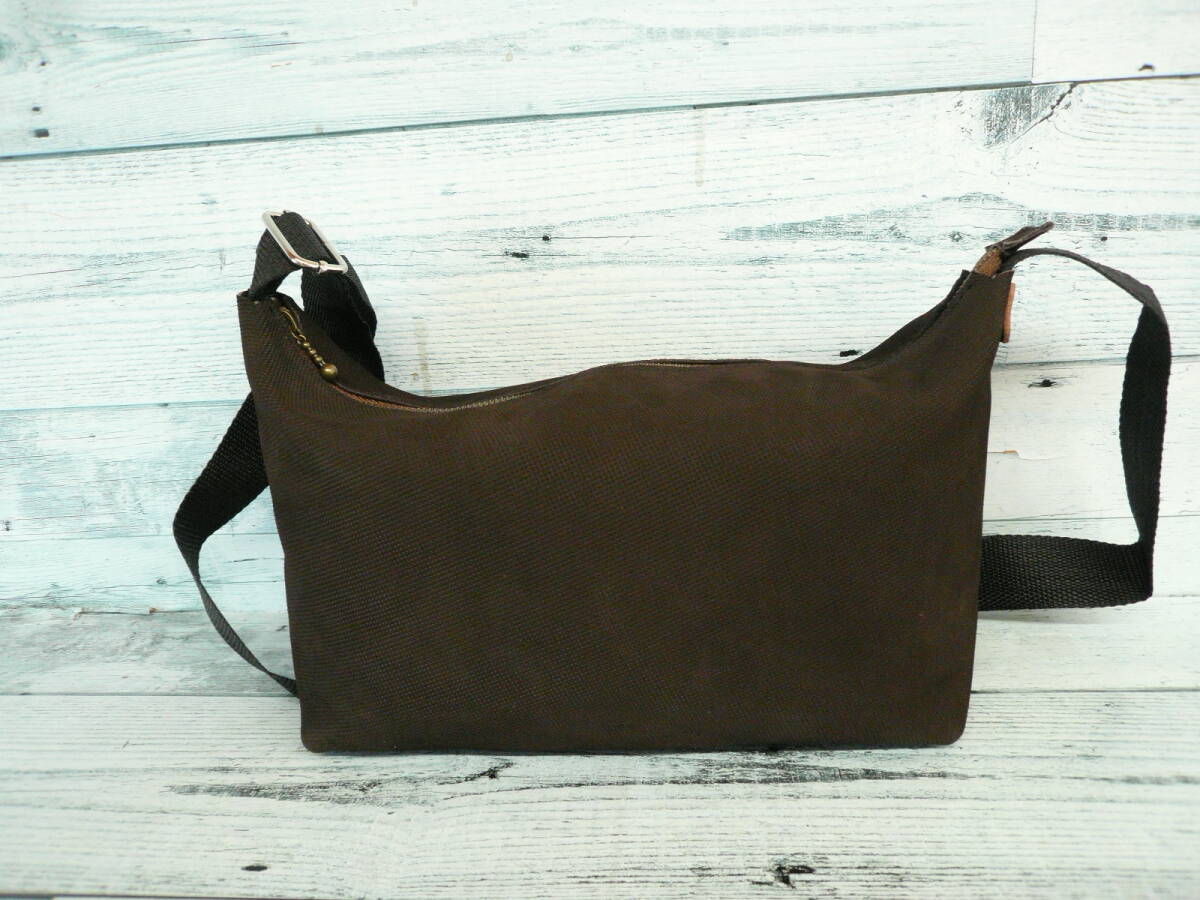 【ファスナーYKK!ショルダーバッグ牛革 ヌバック型押し】ハンドメイドバッグ 作家手作り日本製バッグ made in Japan 441