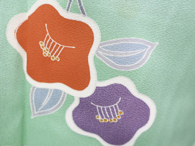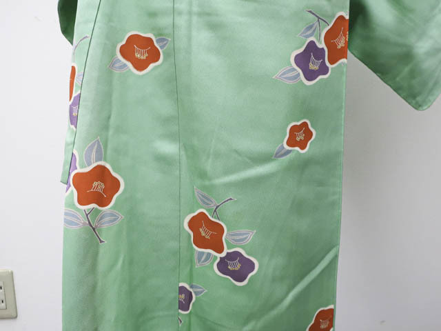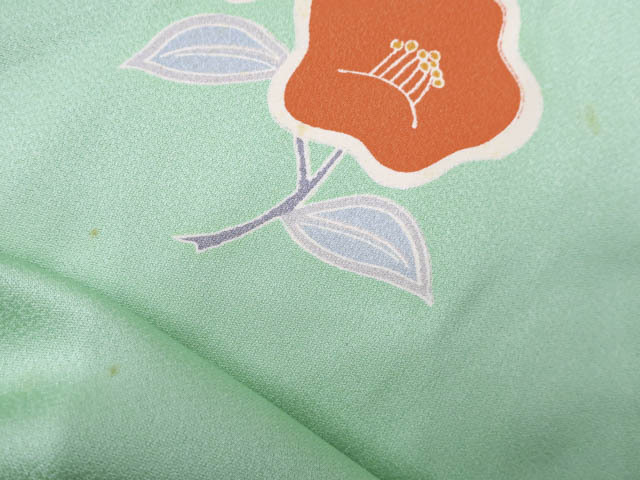 リサイクル商品のため、所々点しみと八掛けにしみがございますが着用可能なお品です。 地色は 薄緑 です。 1枚目の画像が近いお色かと思われます。 素材は正絹です。 |