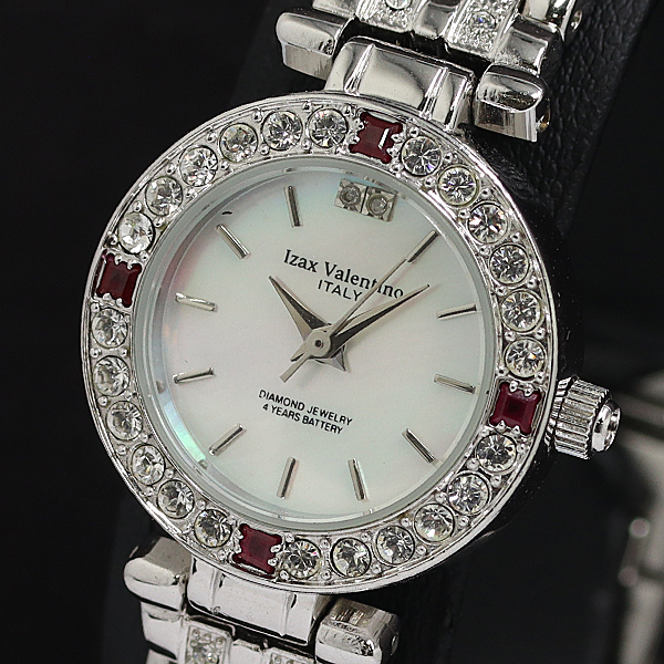 1円 稼働 アイザックバレンチノ IVL-9100-2 ダイヤベゼル QZ シェル文字盤 レディース腕時計 3835000 9BJY MST