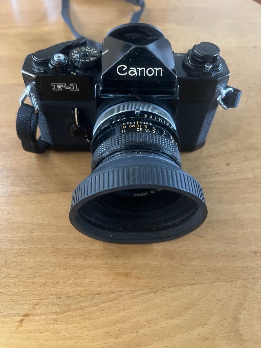 この度は、Canon(キヤノン)を代表するプロ仕様のフラッグシップ機、F-1(初期型)と、人気のNew FD 35mm F3.5単焦点レンズのセットをご覧いただきありがとうございます。