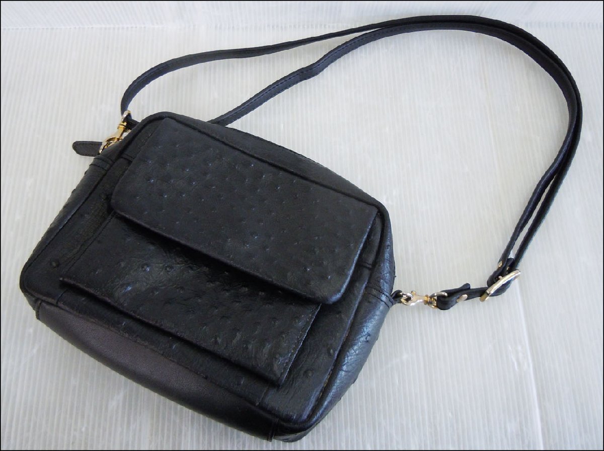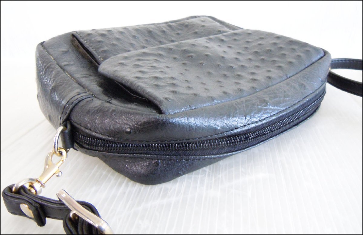 Bana8◆オーストリッチ レザー ショルダーバッグ 黒