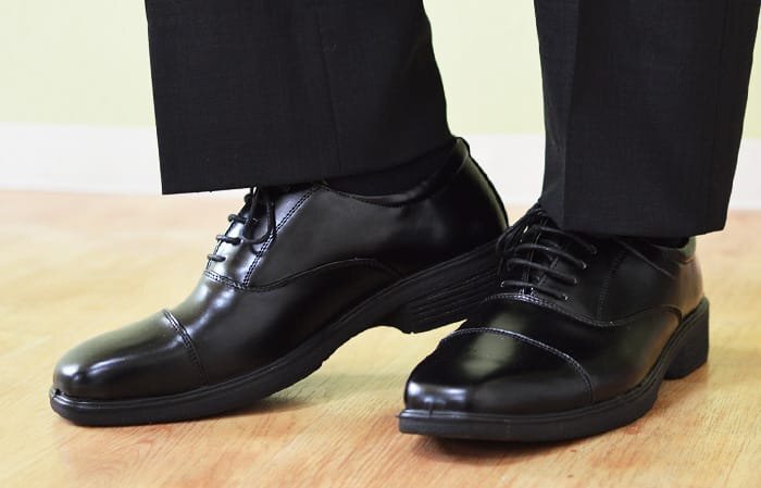 沢山歩いても疲れにくいようにクッションが入っているのでビジネスシューズながらも走ることが可能に◎
