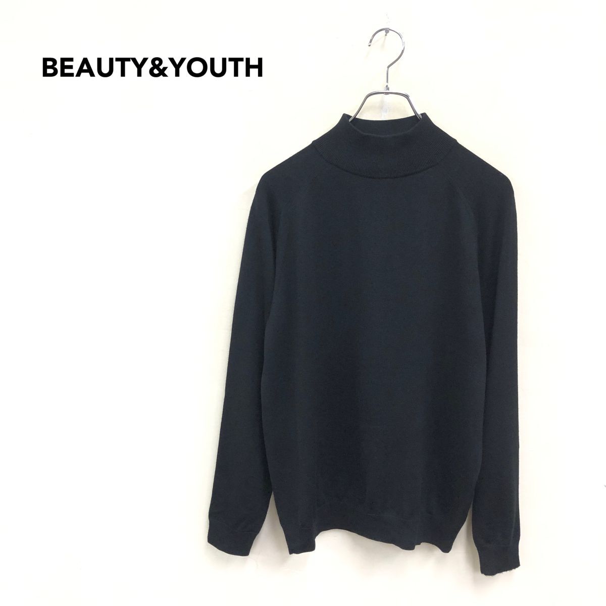 2K3374-K◆良品 BEAUTY&YOUTH ビューティーアンドユース ハイネック長袖ニットトップス◆sizeM ブラック 無地 シンプル 薄手 ウール100%