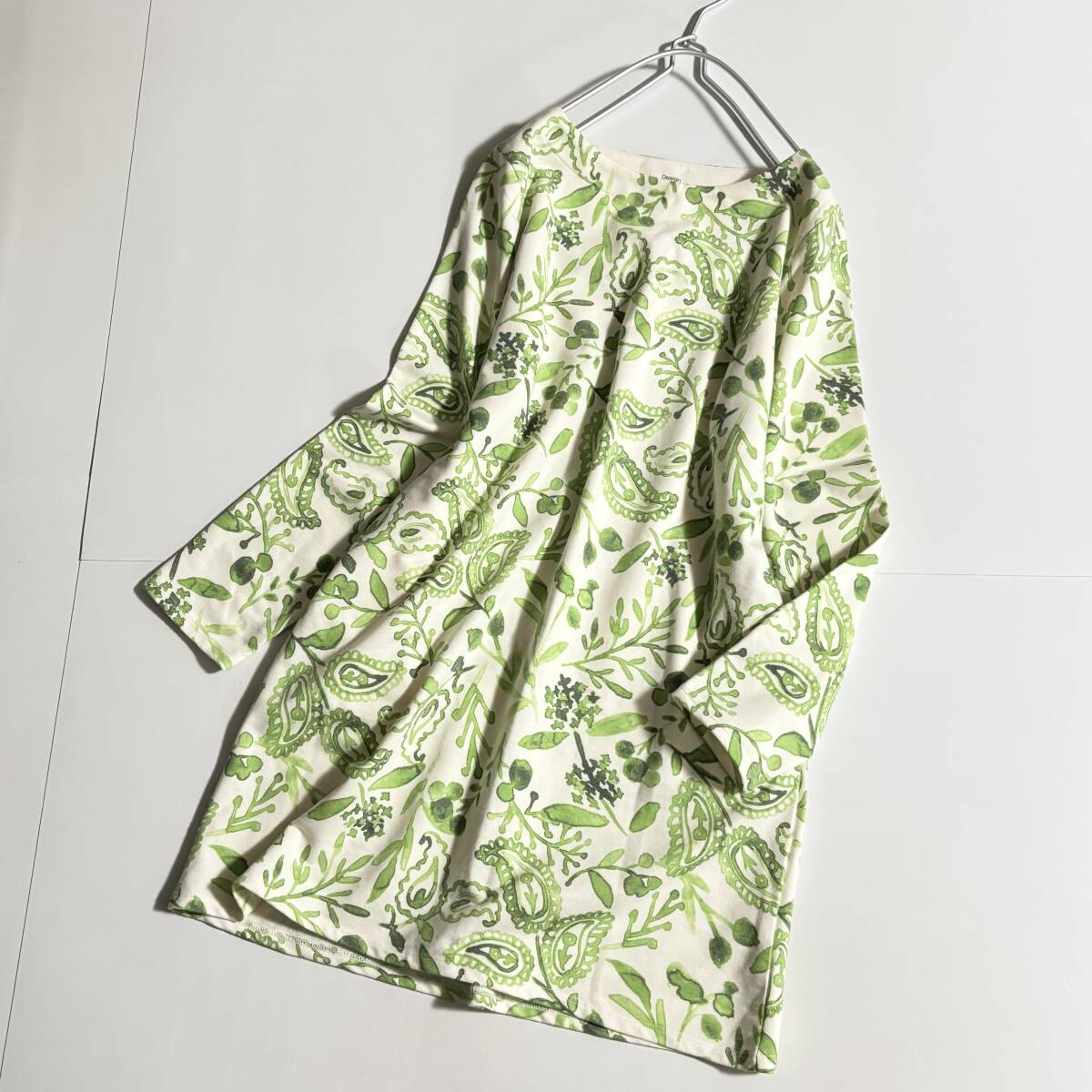 graniph グラニフ ゆったりサイズF // グリーン系植物・ペイズリー柄 ワンピース ③