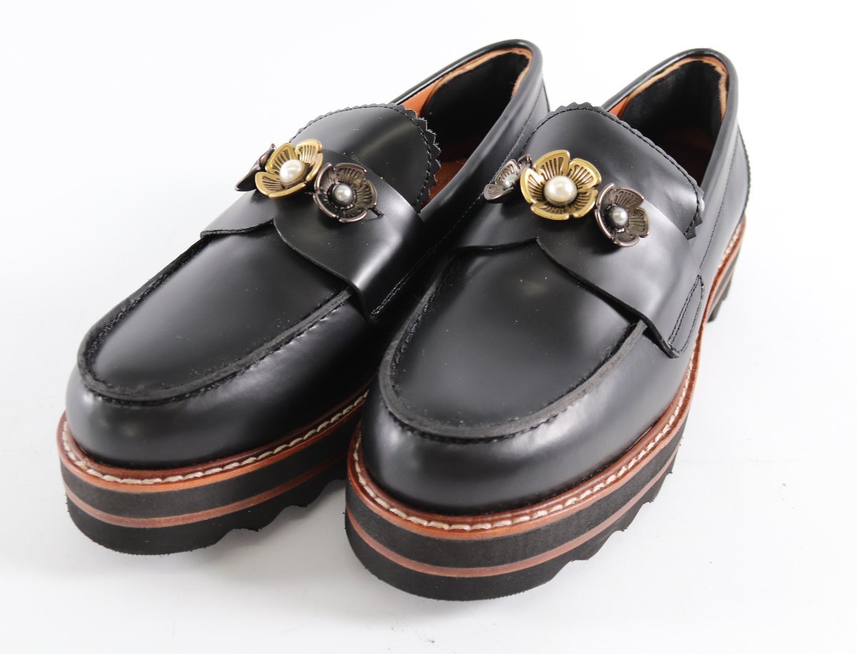 | COACH コーチ ローファー フラワー フェイクパール サイズ 6C 36.5 レディース レザー 黒 靴 シューズ 3146-YO | |