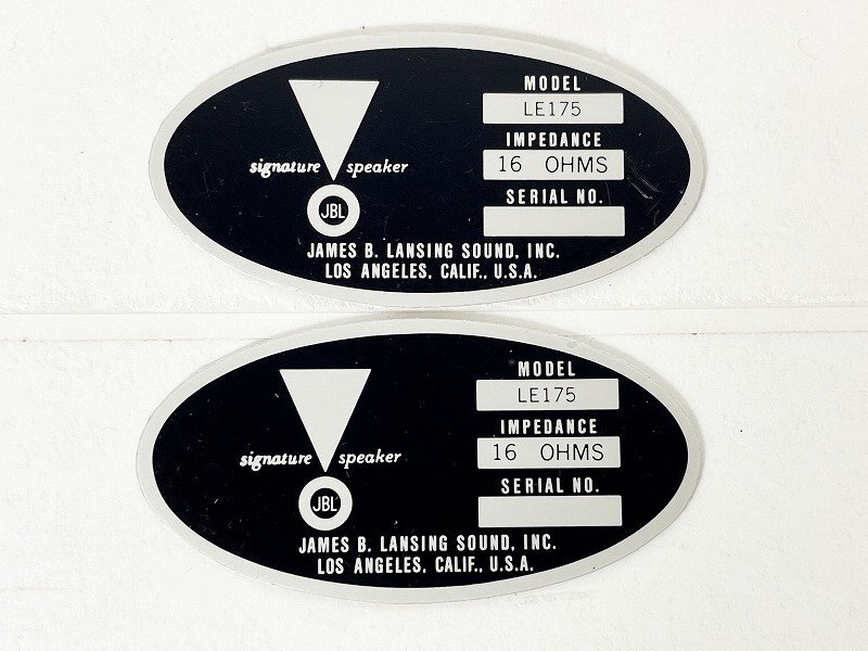 JBL LE175 プレート 2枚です。 こちらは複製品となります。 複数ございますので、同等品の発送となります。 ・サイズ:62.7×31.7(mm) |