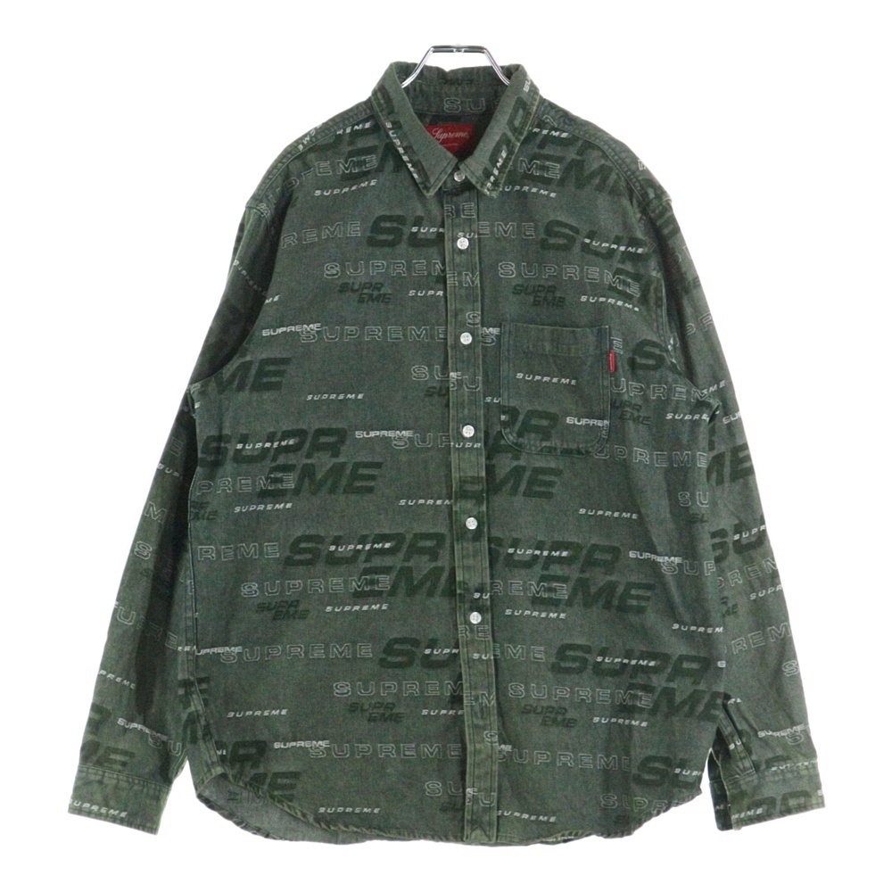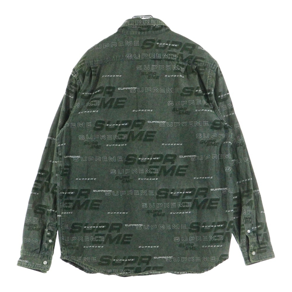 SUPREME シュプリーム 19AW Dimensions Logo Denim Shirt ディメンションズ 総柄ロゴ デニム 長袖シャツ グリーン
