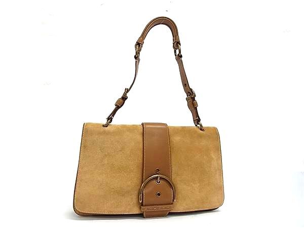 1円 COACH コーチ スエード×レザー ショルダーバッグ ハンドバッグ 肩掛け レディース ブラウン系 BP5384