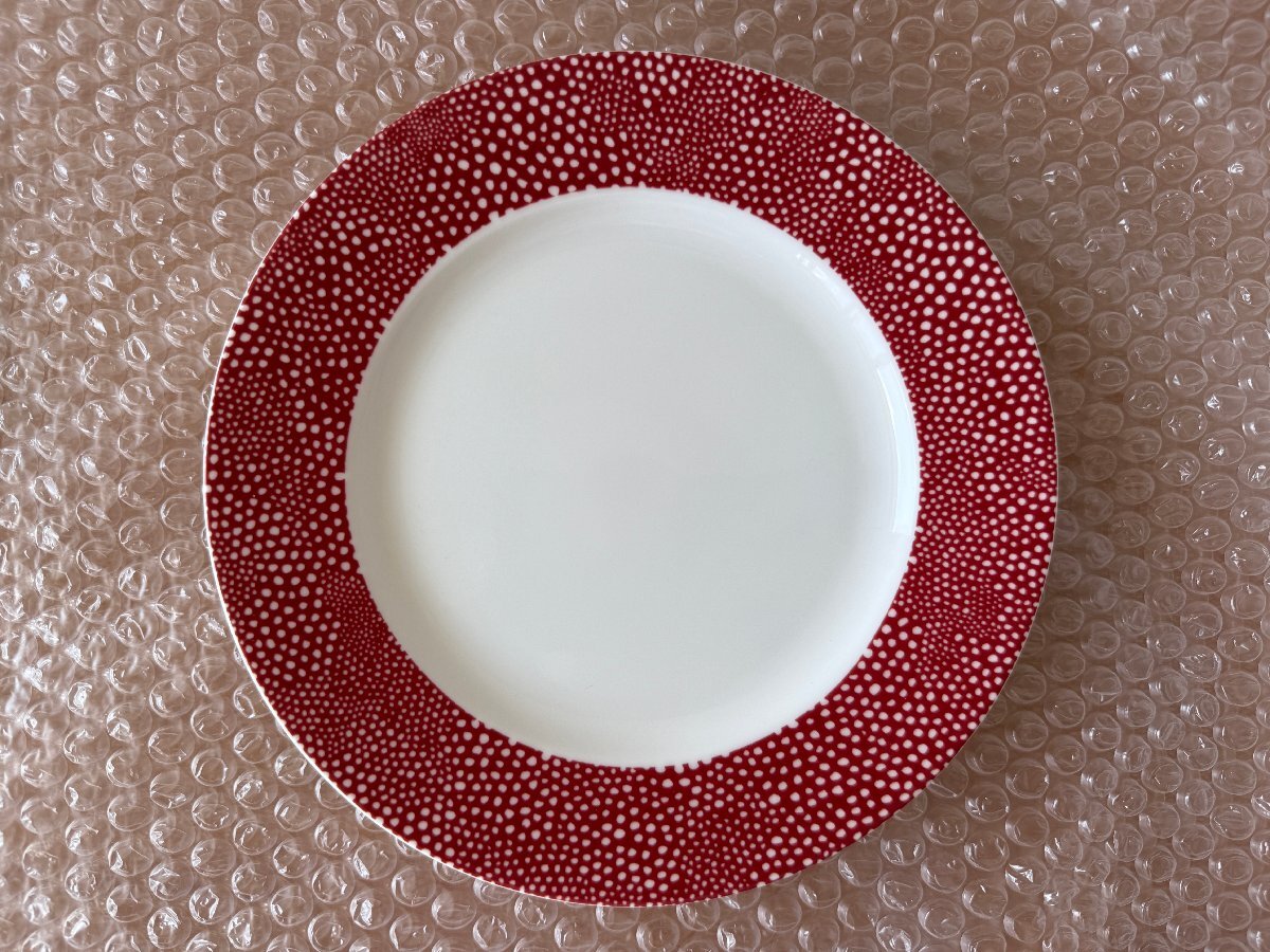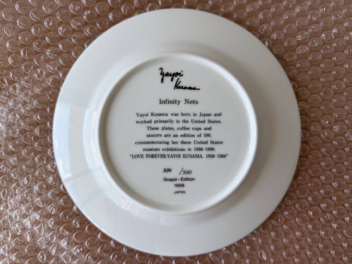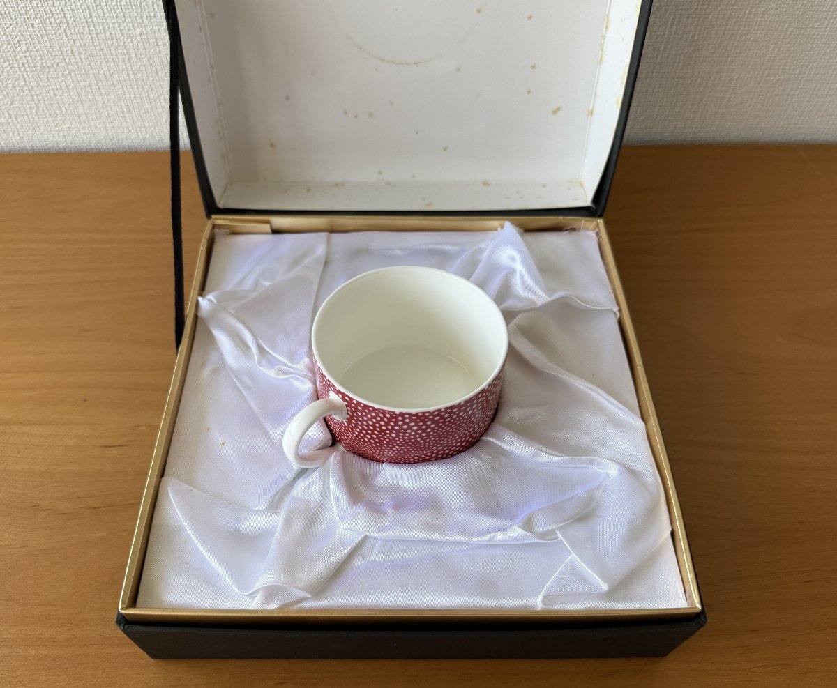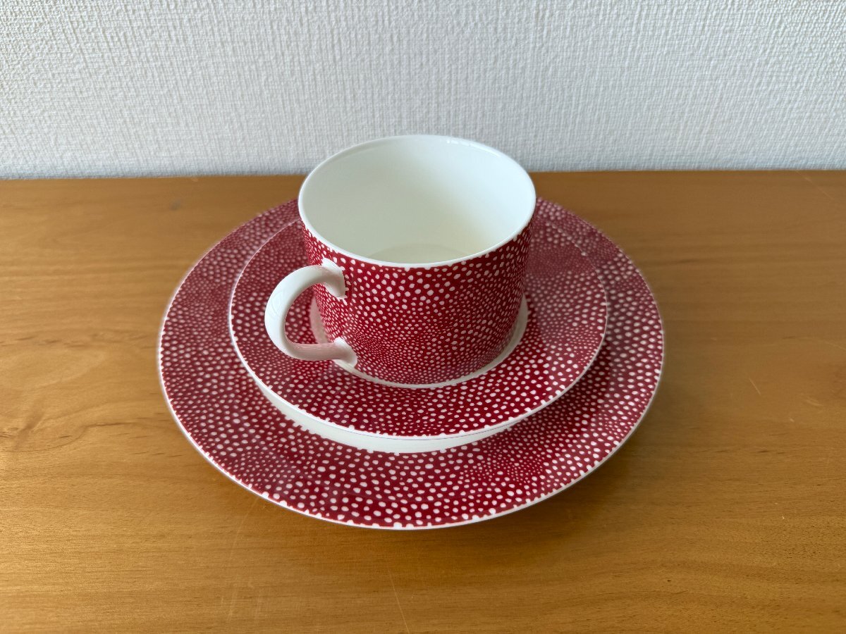 【宇美】真作 草間彌生 YAYOI KUSAMA 無限の網 Infinity Nets 500個限定3Pcs.セット カップ&ソーサー&デザートプレート 赤 希少作品