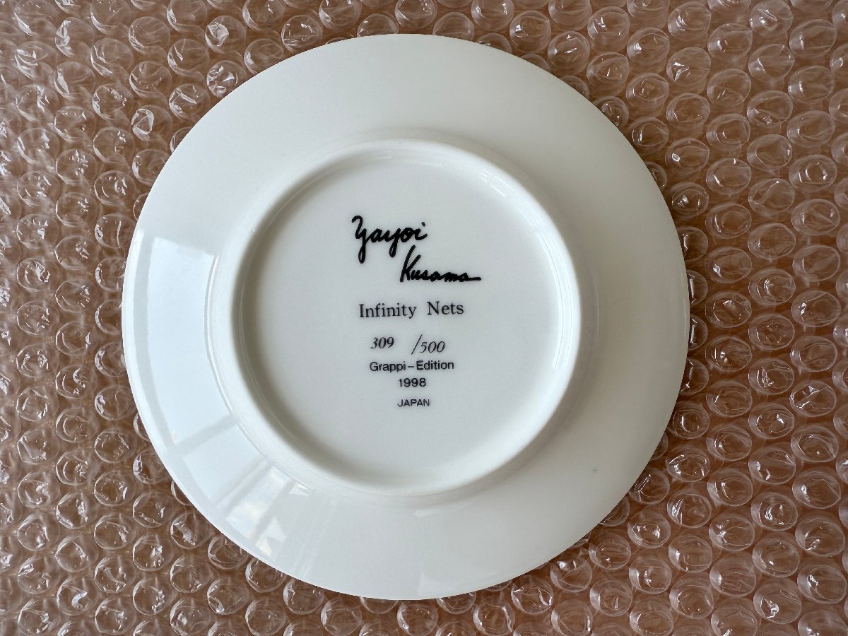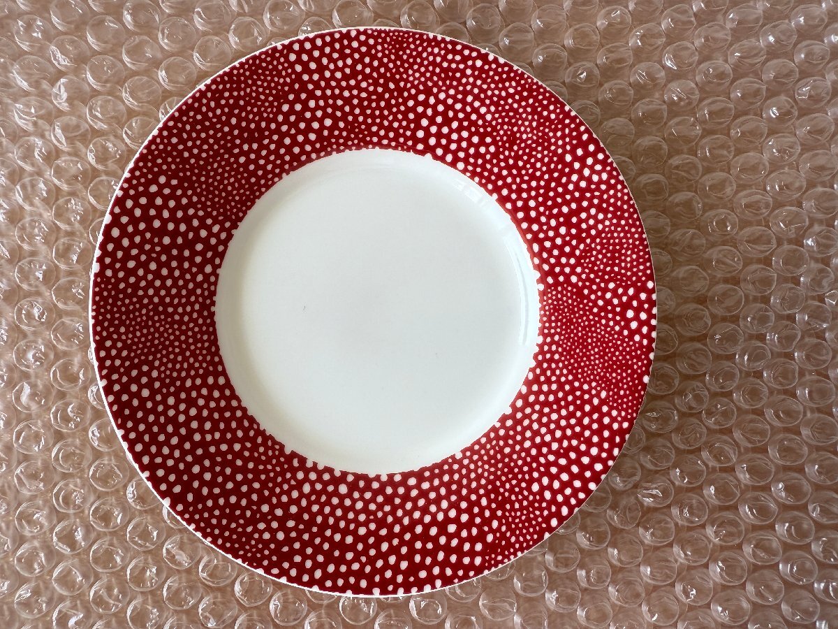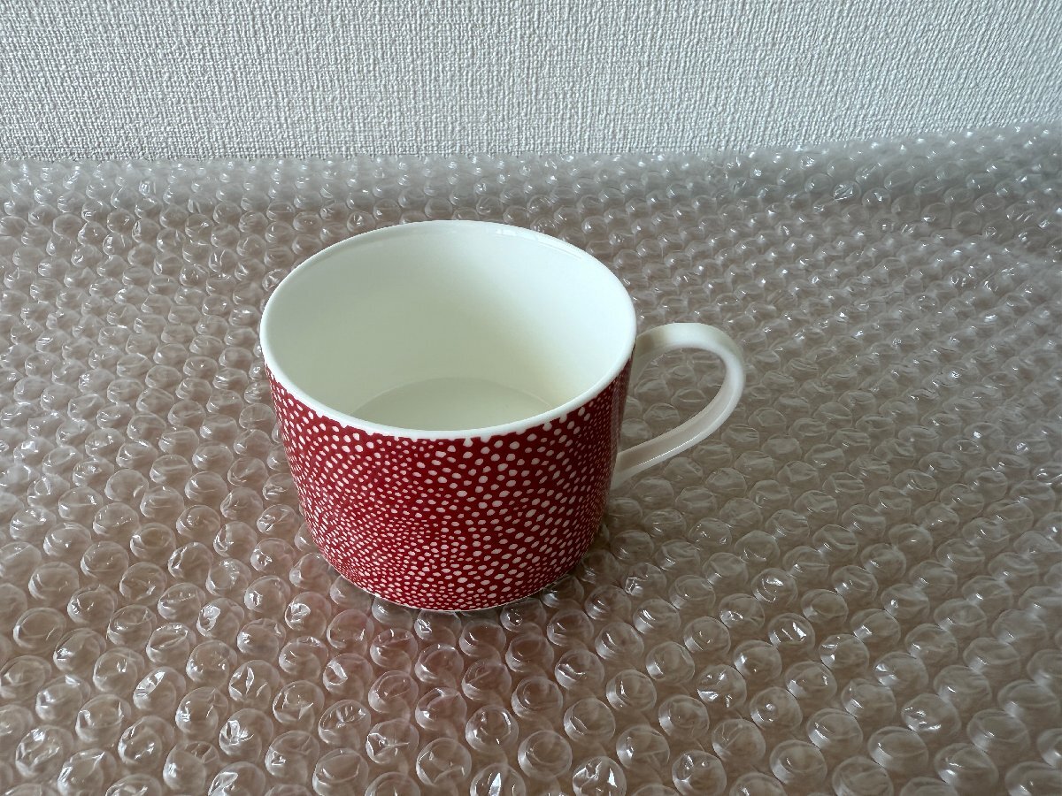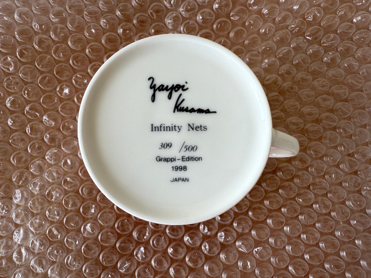 【宇美】真作 草間彌生 YAYOI KUSAMA 無限の網 Infinity Nets 500個限定3Pcs.セット カップ&ソーサー&デザートプレート 赤 希少作品