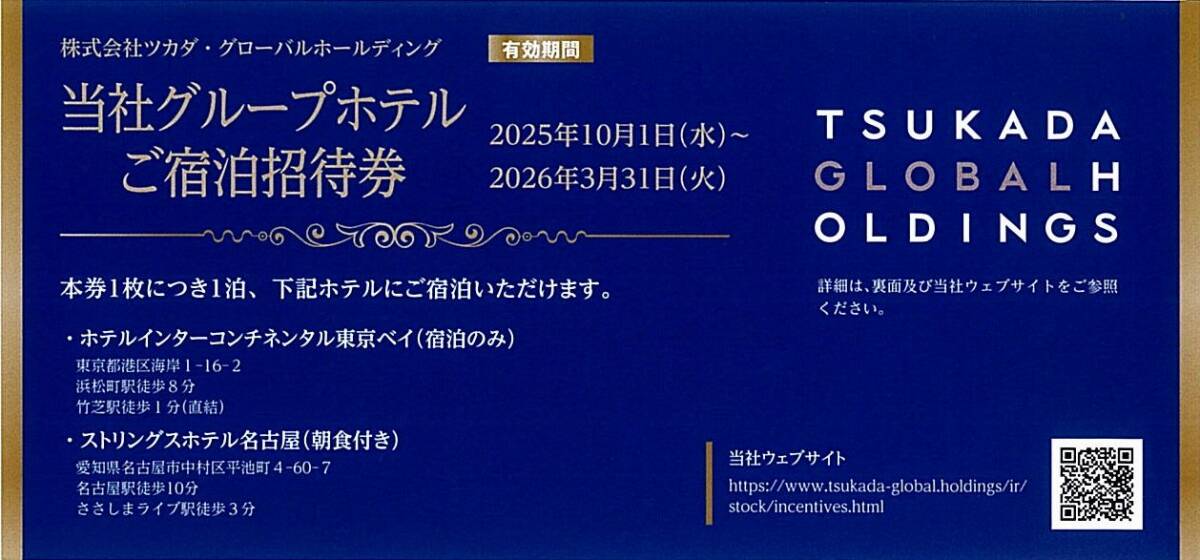 有効期限は「2026年3月31日」です。 本券1枚につき1室2名まで、下記ホテルにてご宿泊(1泊)いただけます。 ・ホテルインターコンチネンタル東京ベイ ・ストリングスホテル名古屋 ※詳細につきましては、画像やホームページの株主優待をご覧ください。 |