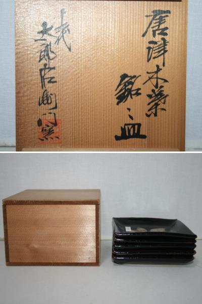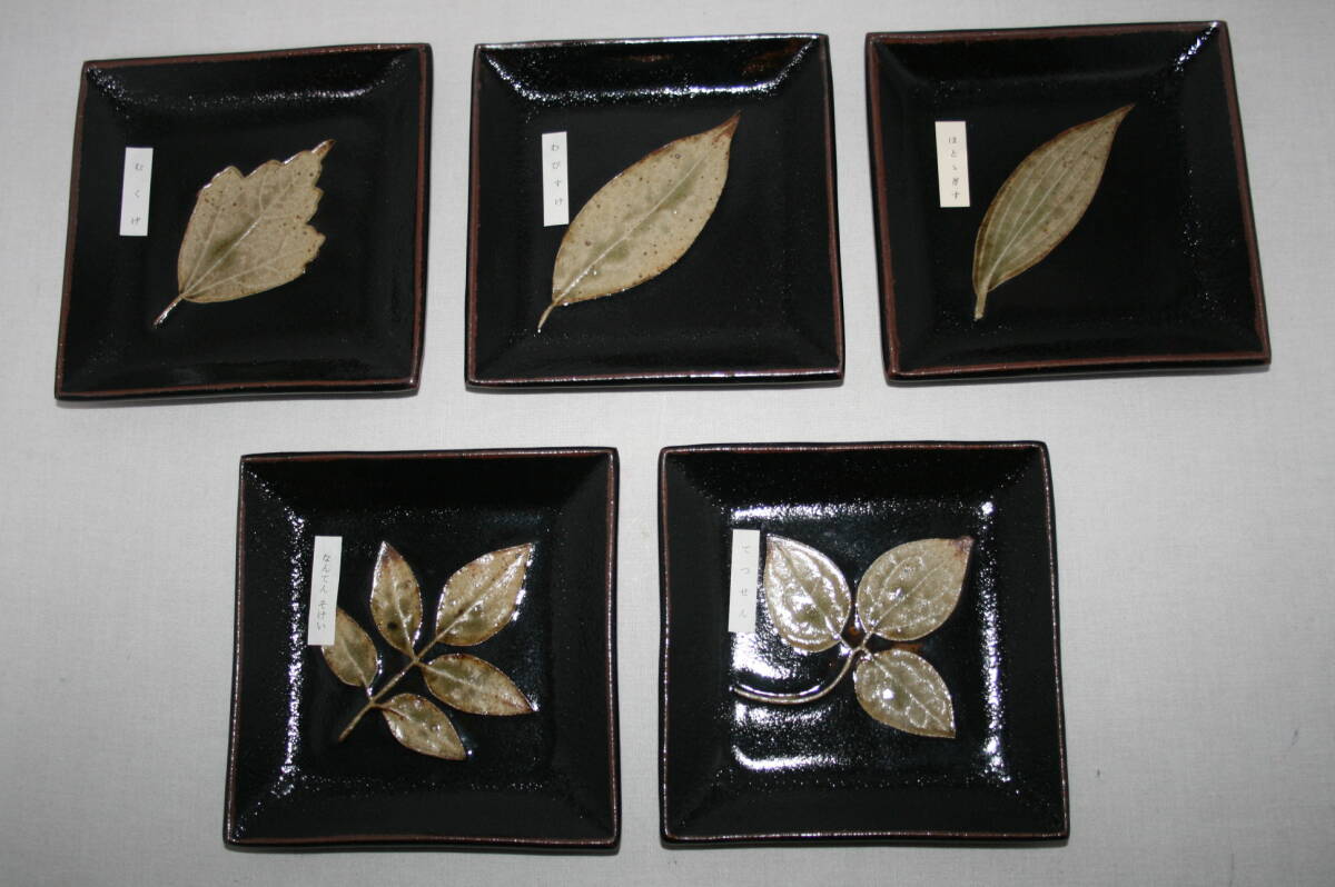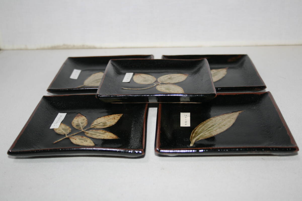☆唐津焼/十三代 中里太郎右衛門窯/唐津焼/木ノ葉天目/柄違い/銘々皿/5枚組/未使用☆