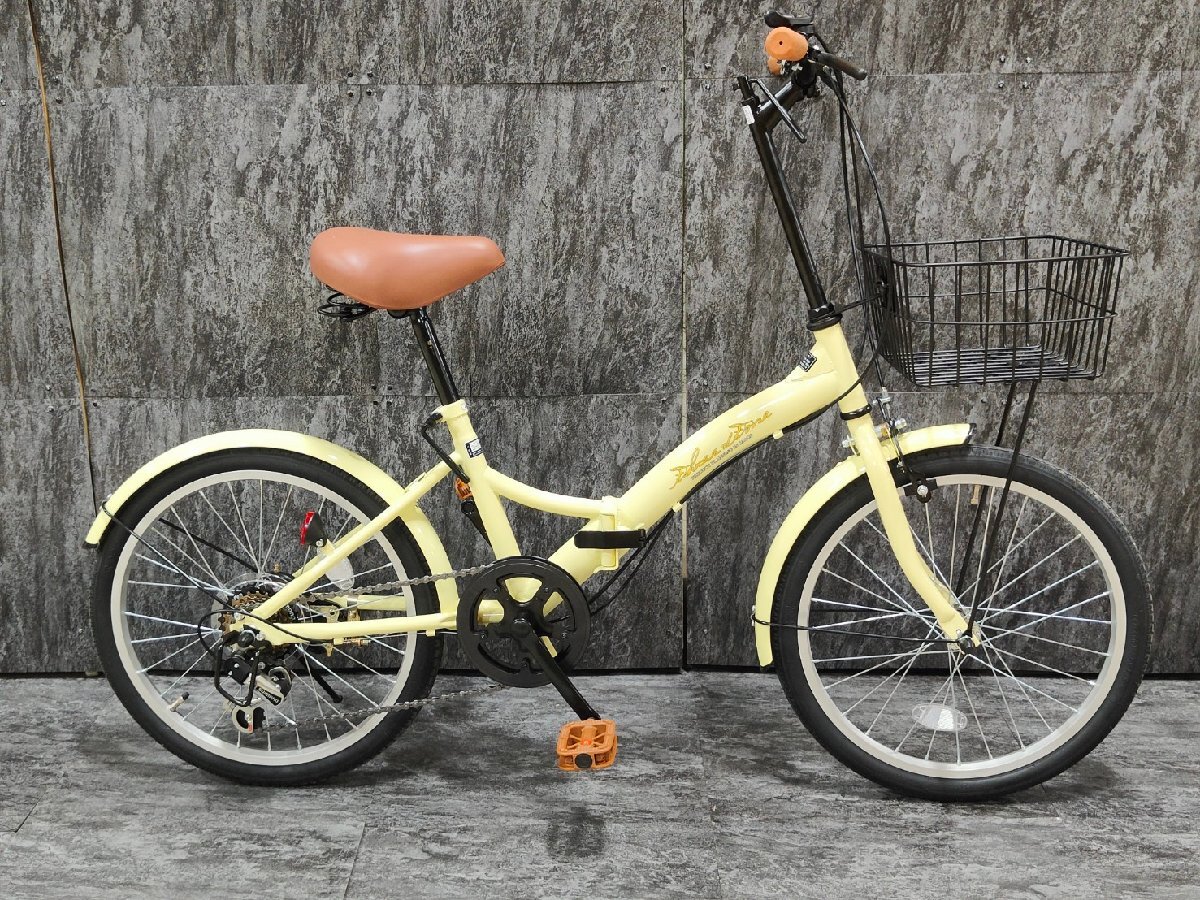 【現品1台のみ】【新車未使用アウトレット品】前カゴ付属20インチ折り畳み自転車Shimano外装6段変速 アイボリー【SK10022】