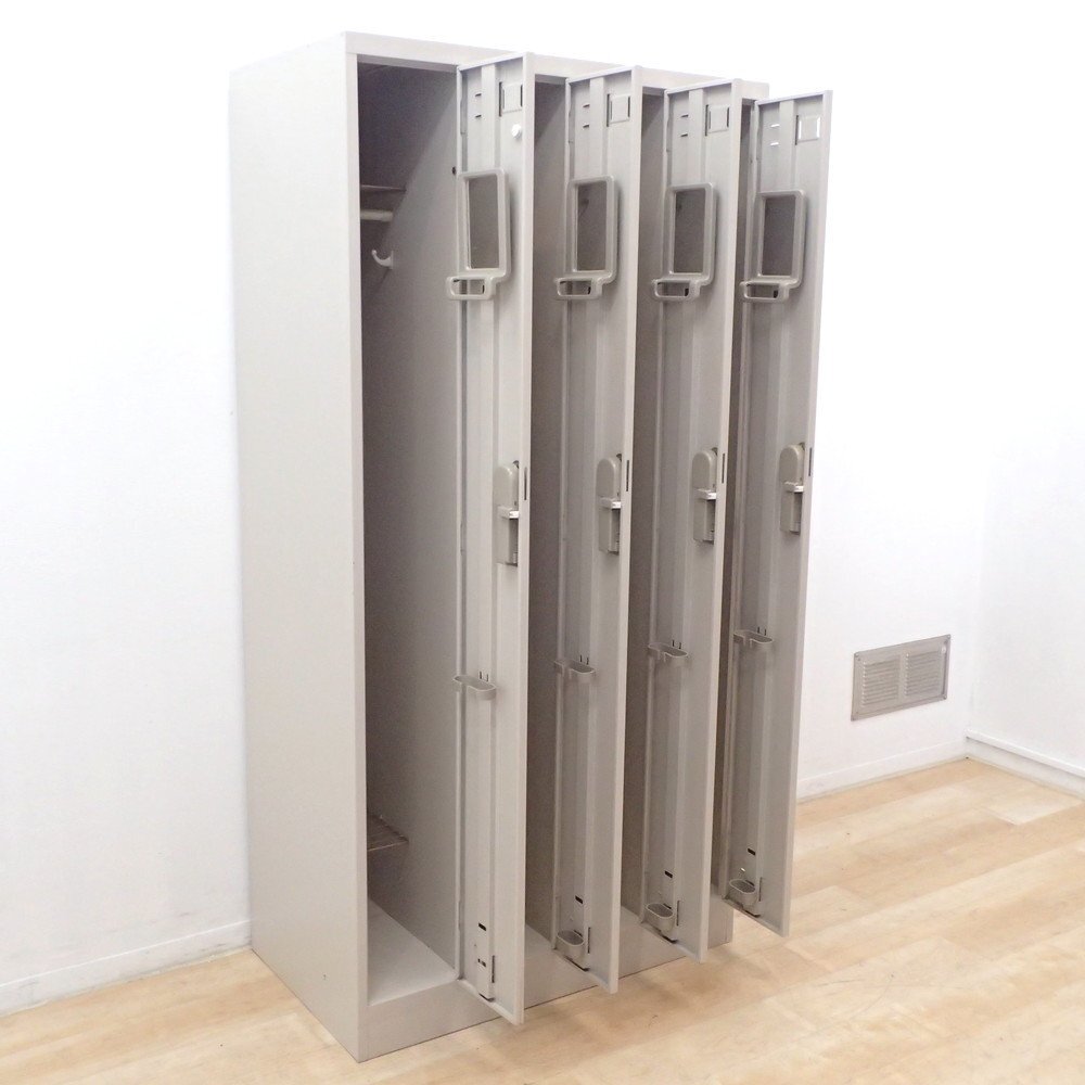 コクヨのLKロッカーシリーズが入荷いたしました。お色味はグレーです。 使い勝手を考えたシンプルなデザインが人気のLKシリーズ。こちらは4人用となります。 網棚やハンガーパイプ、鏡など庫内の整理や更衣室ロッカーとしての基本機能を備えています。 奥行たっぷりの51.5cm!収納力もしっかりで事務室用やスポーツ施設などに最適です。 ぜひ、更衣用ロッカーとしてご活用ください! ※水受けが一部欠けている個室がございます。予めご理解の上、ご検討をお願いいたします。 |