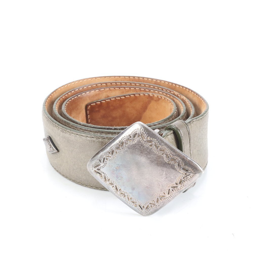 1円■美品■Amboise アンボワーズ■レザー ベルト シルバー バックル ビジネス 紳士 カジュアル メンズ RUE CQ23-9