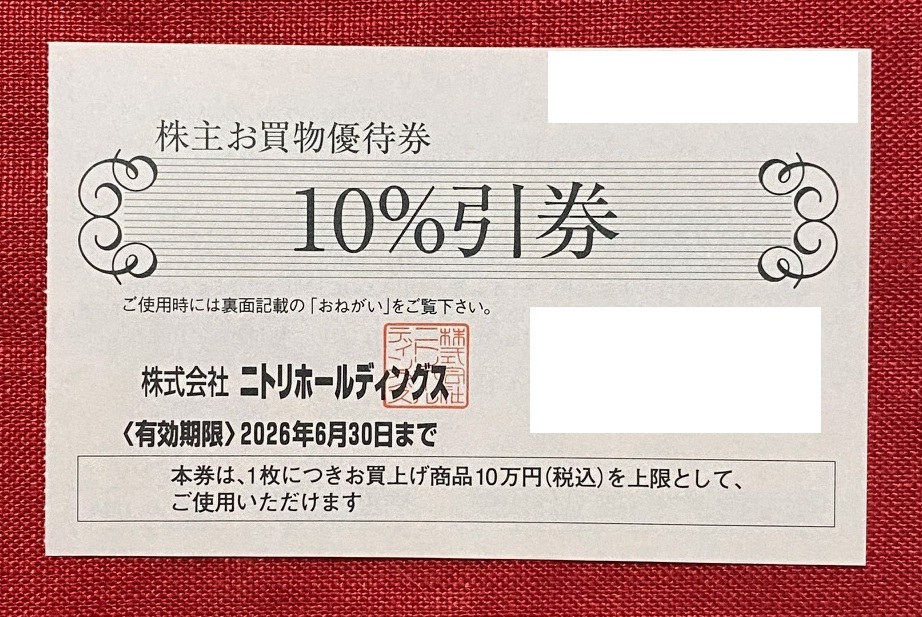【AL】ニトリ 株主お買物優待券 10%引券 1枚  有効期限:2026/6/30 速達対応可能