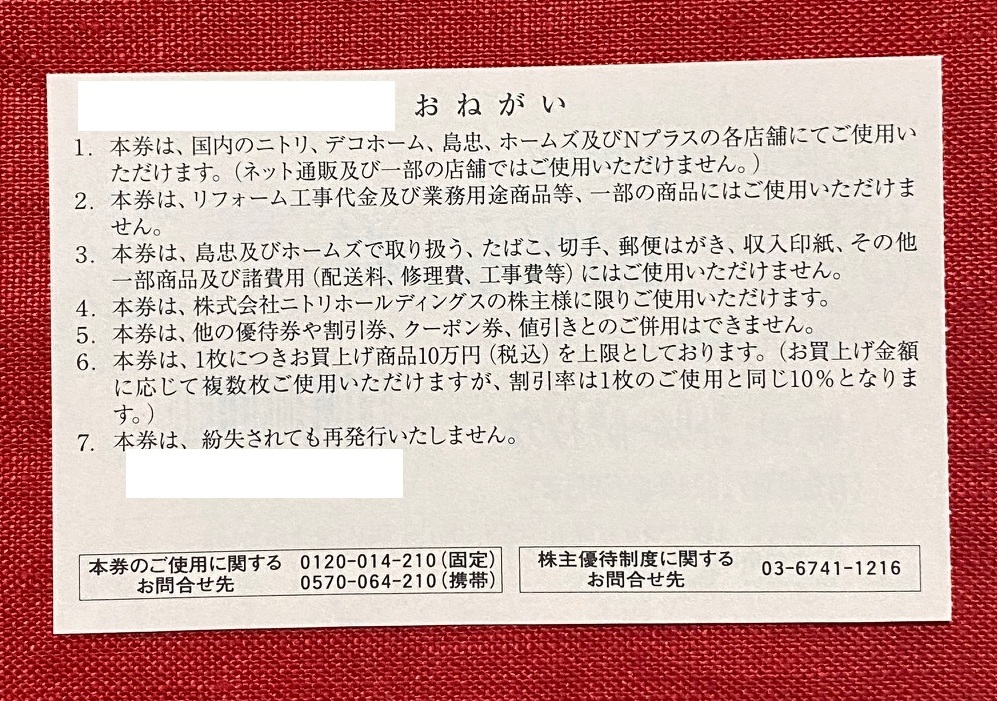 商品名:株式会社ニトリホールディングス 株主優待券