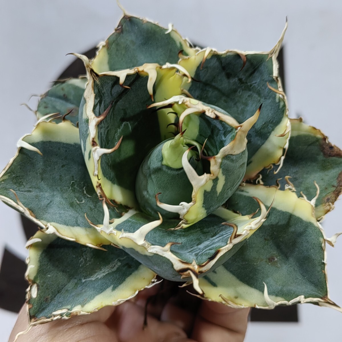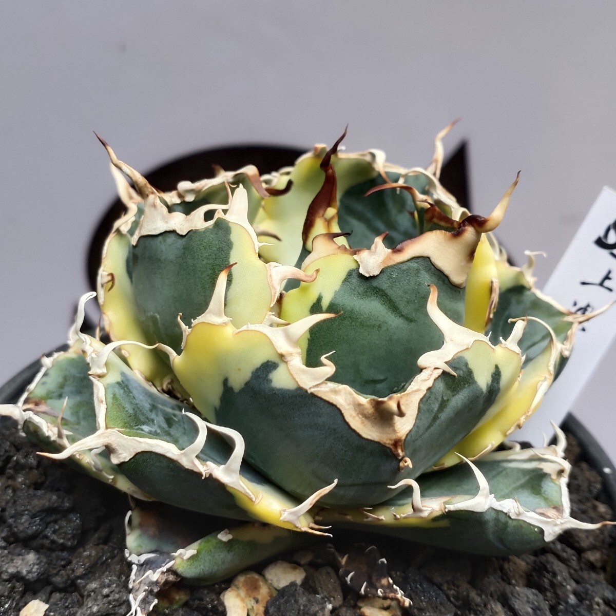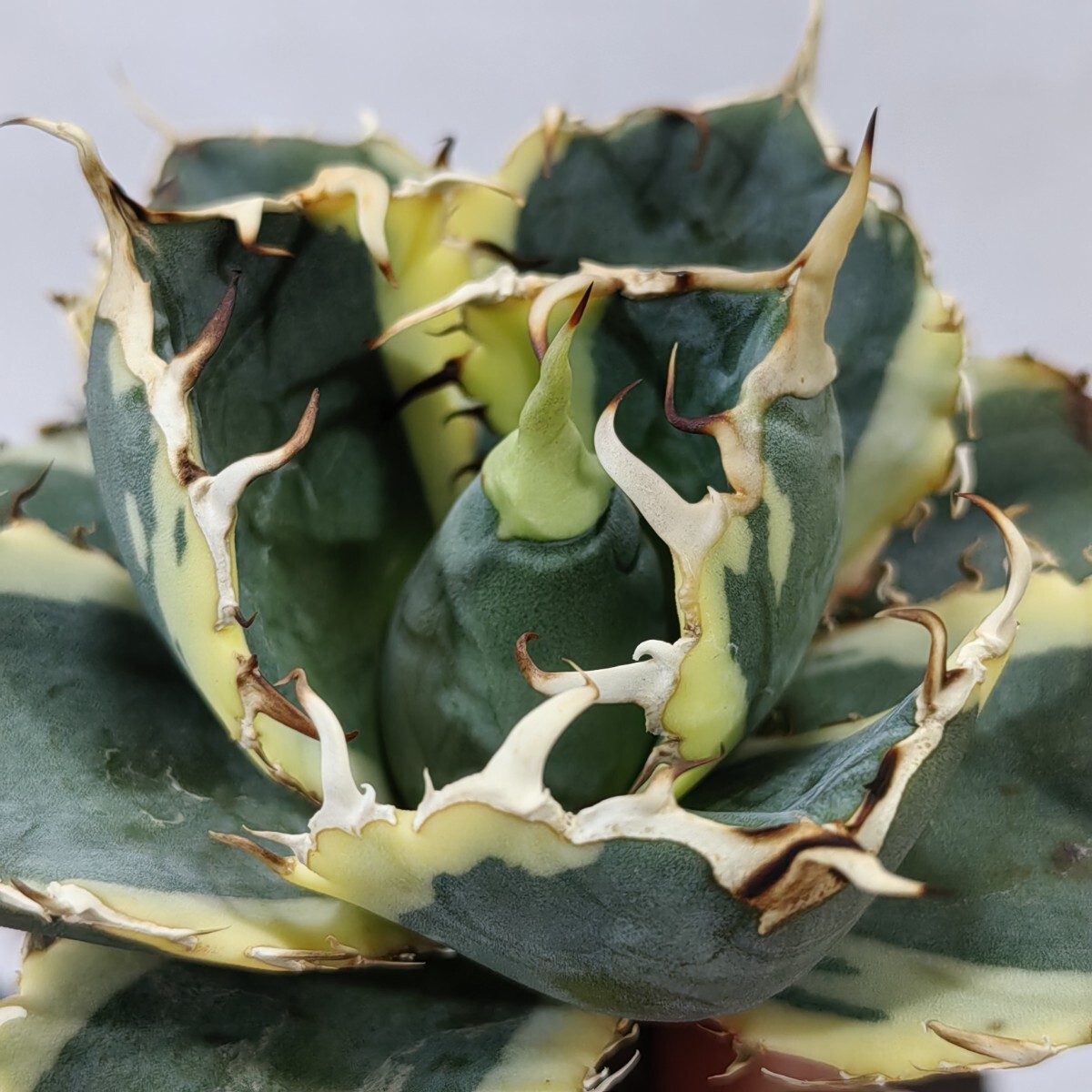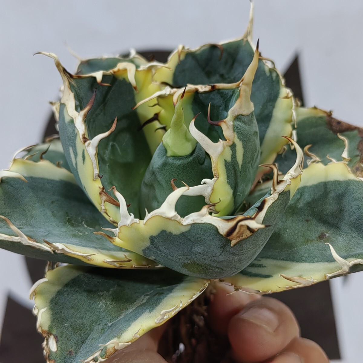 189【上澳園芸】 アガベ チタノタ 白鯨錦 覆輪斑 極上希少株 LED管理株