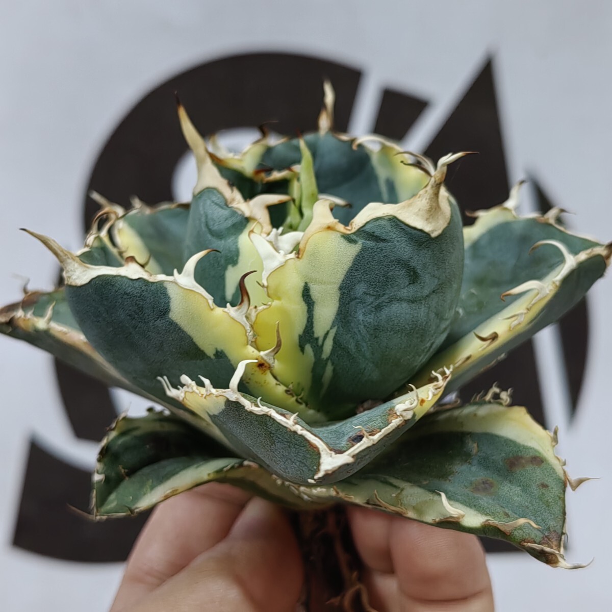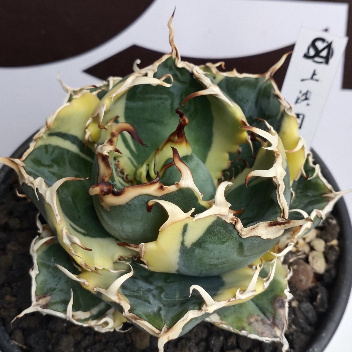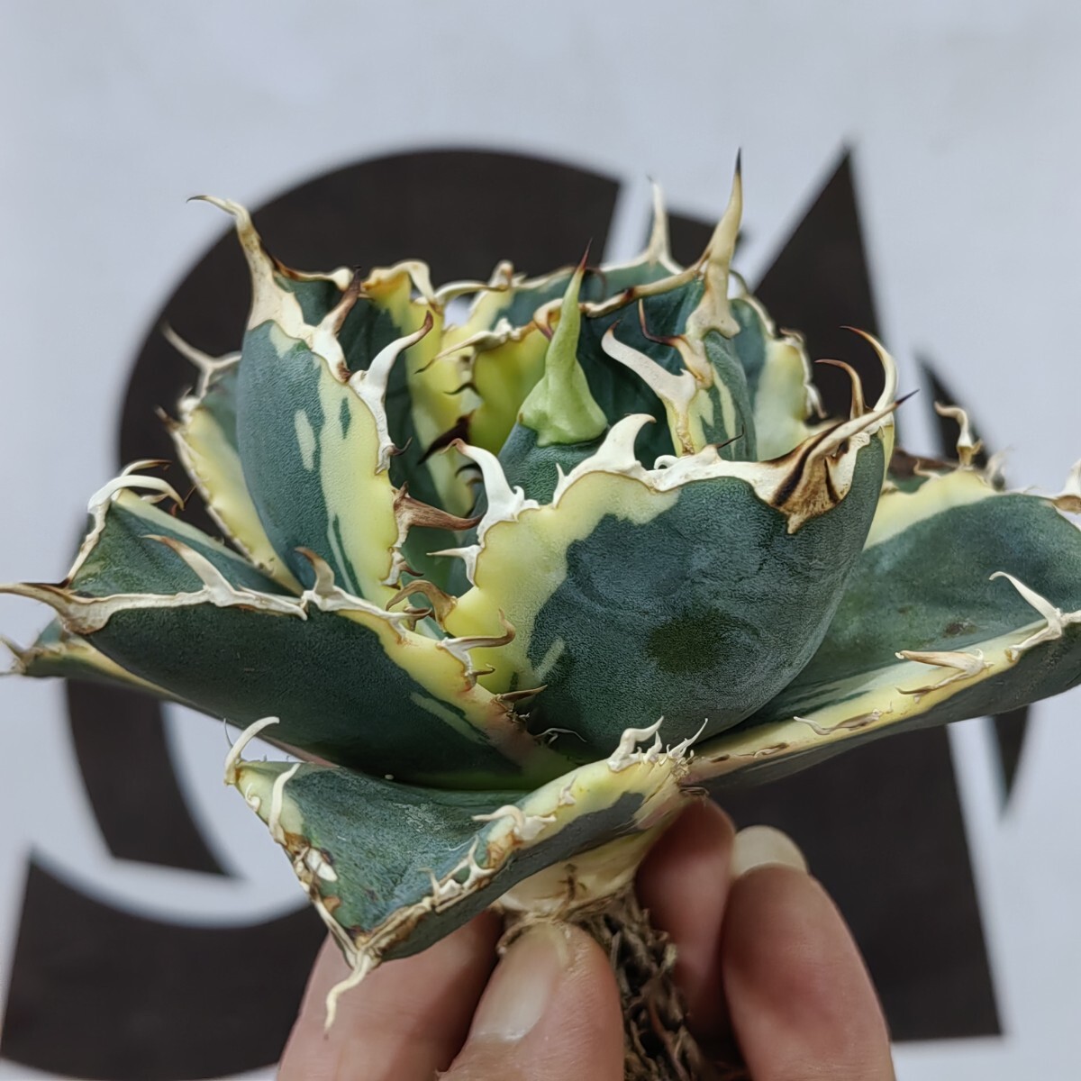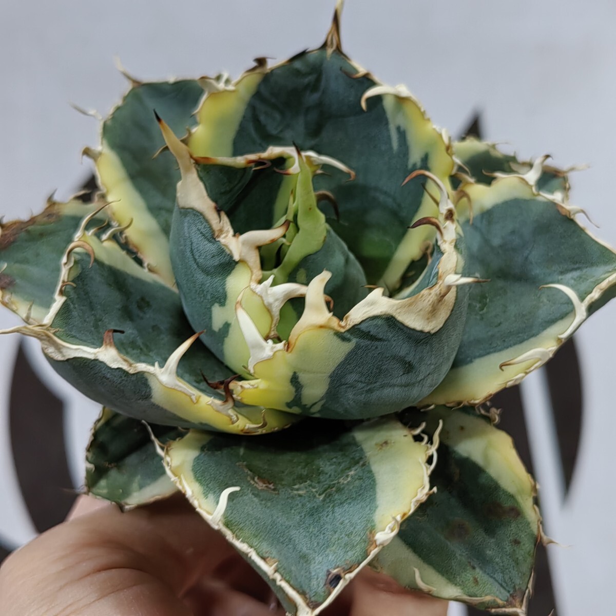 189【上澳園芸】 アガベ チタノタ 白鯨錦 覆輪斑 極上希少株 LED管理株