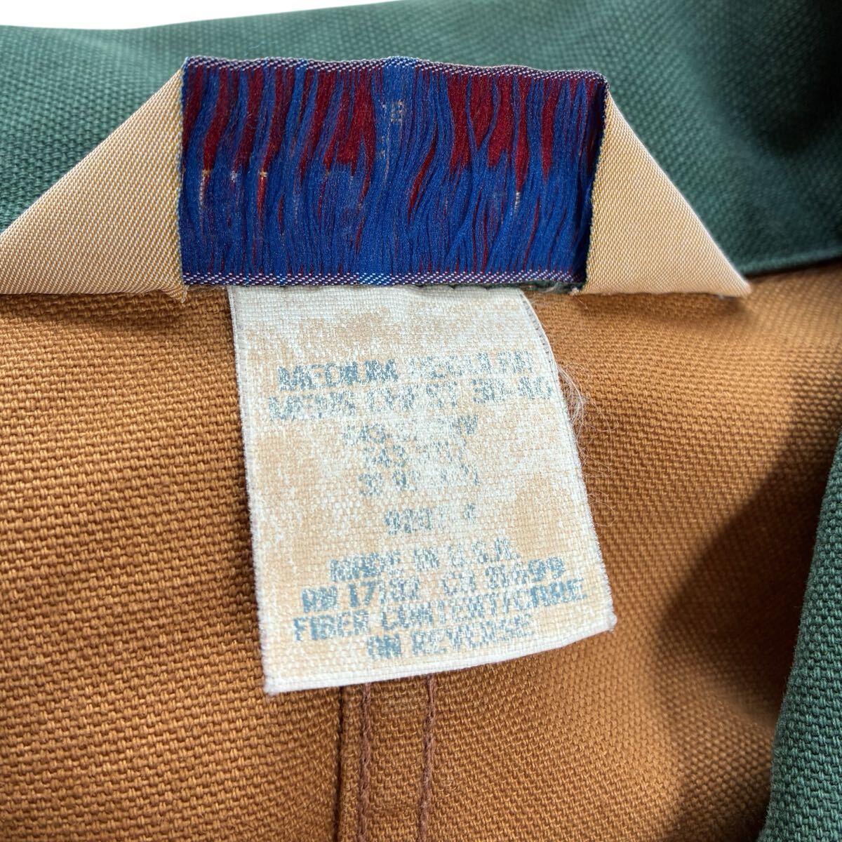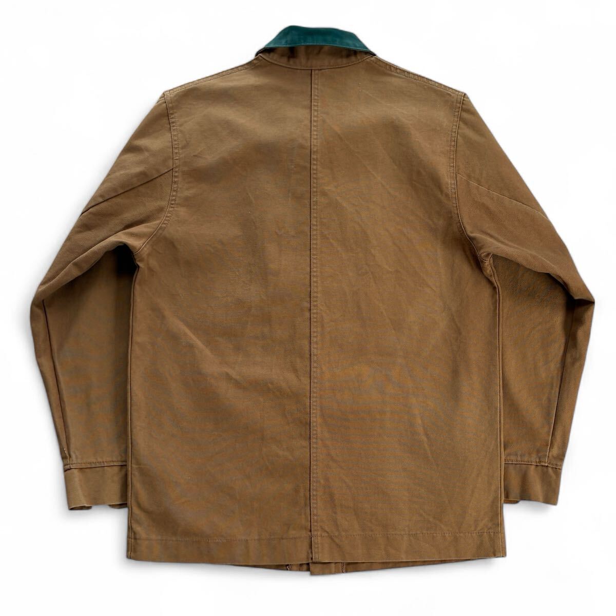 ボディはブラウン、襟はモスグリーンのダック地