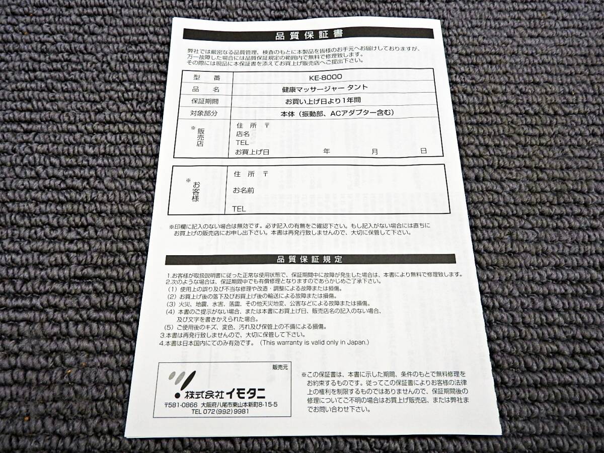 【新品】IMOTANI イモタニ■健康マッサージャー・タント KE-8000 マッサージ器 箱・取扱説明書■未使用品「管理№KT924」