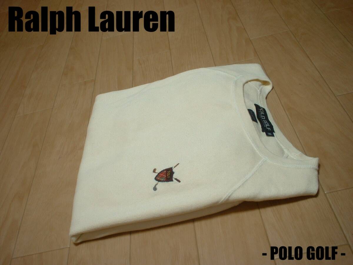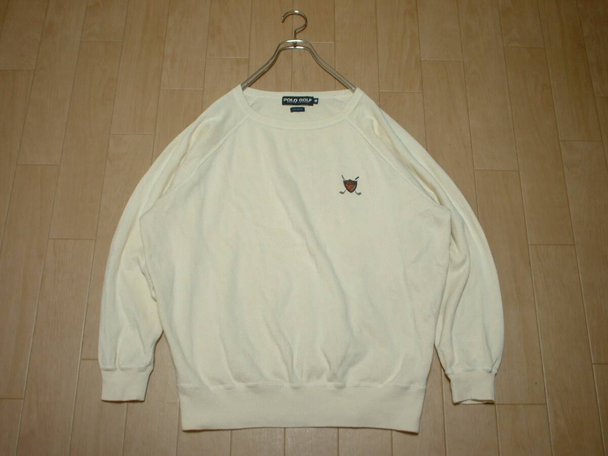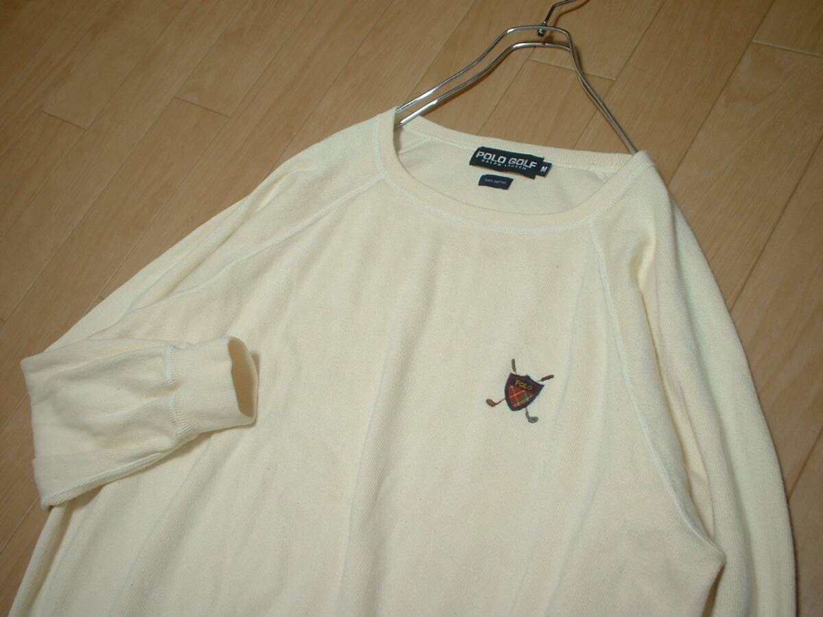 RALPH LAUREN POLO GOLFワンポイント刺繍コットンリブニットスウェットM白オフホワイト正規ポロゴルフラルフローレンビンテージトレーナー