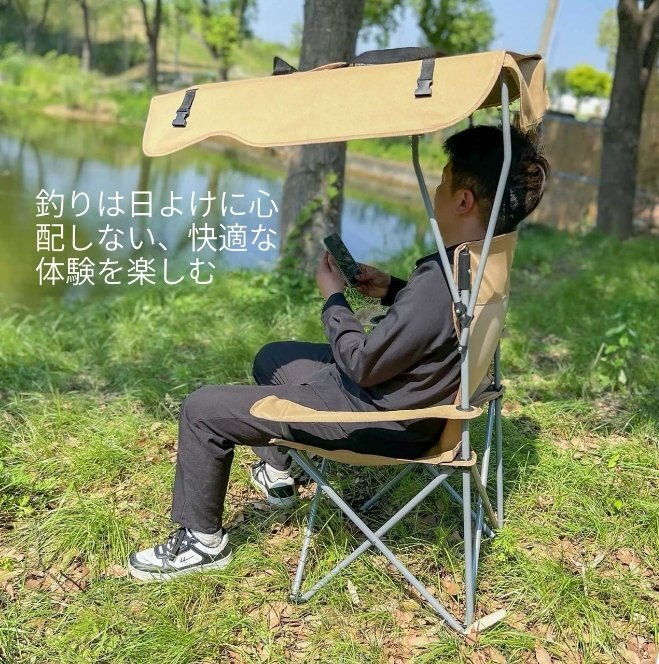 折りたたみチェア 折り畳みチェア 屋根付き 椅子 イス キャンプチェア耐荷重150kg 日よけ レジャーチェア アウトドア 釣り 登山 BBQ キャ