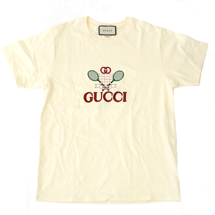 1円◆美品 GUCCI グッチ Tシャツ 半袖 ロゴ テニス S アイボリー◆E.Csg.tI-24