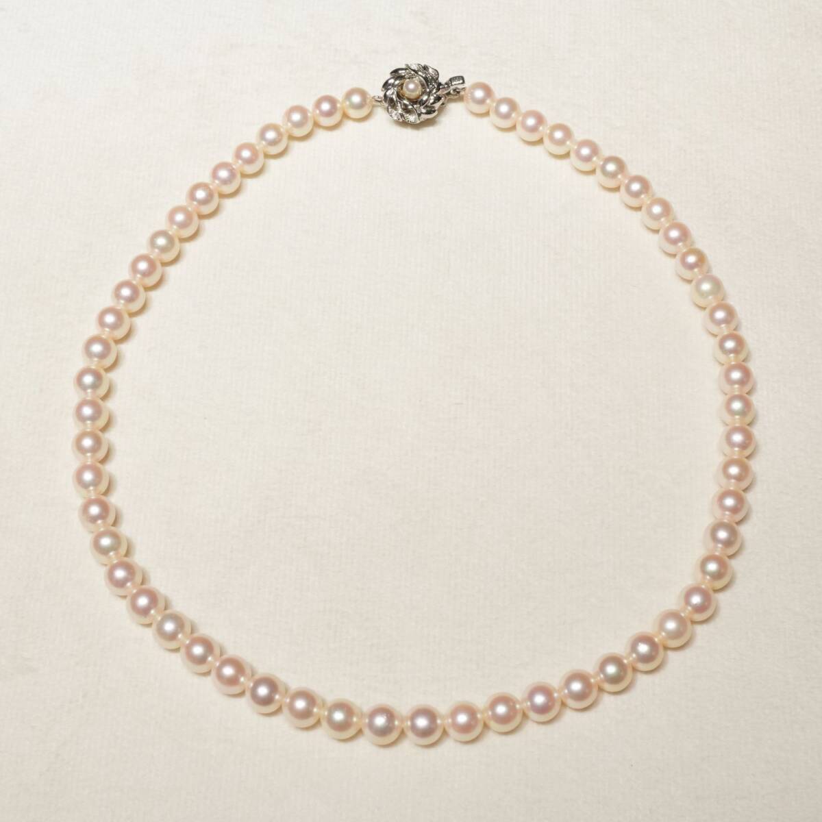 シルバー 真珠 ネックレス アコヤ パール フラワークラスプ/24-648