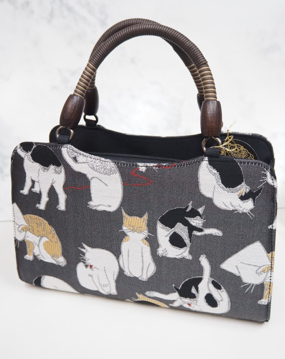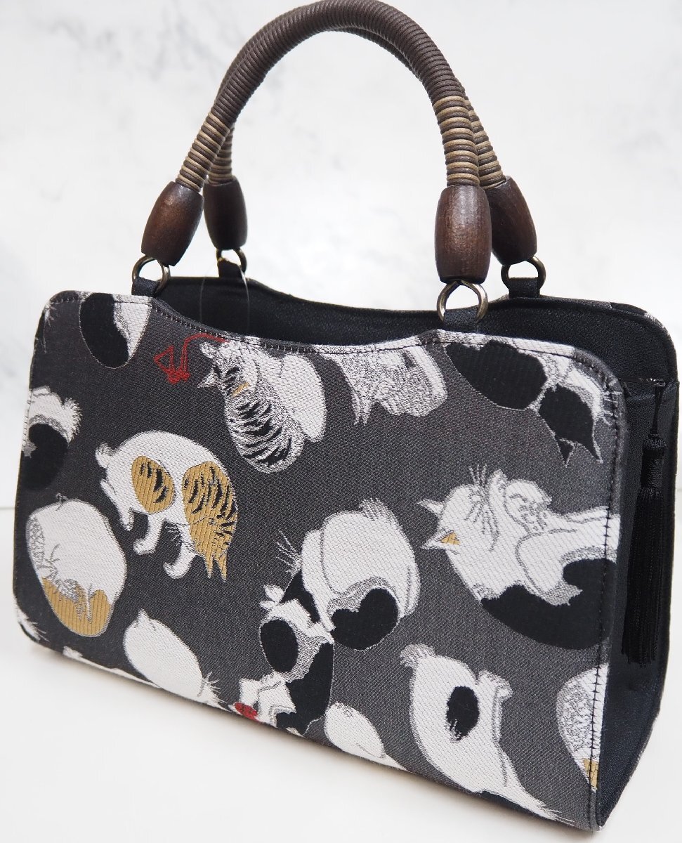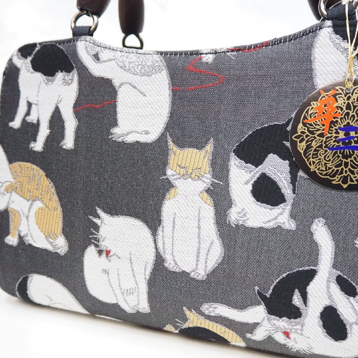 愛らしい猫柄が目を惹く和装バッグのご紹介です。