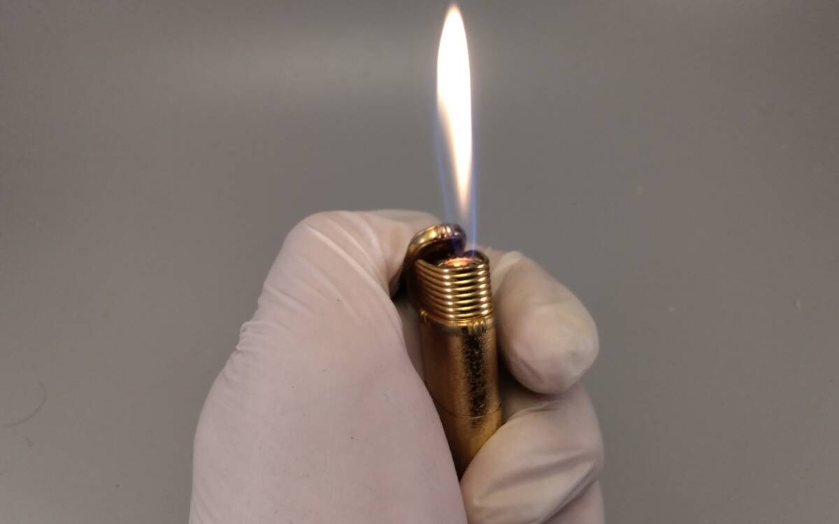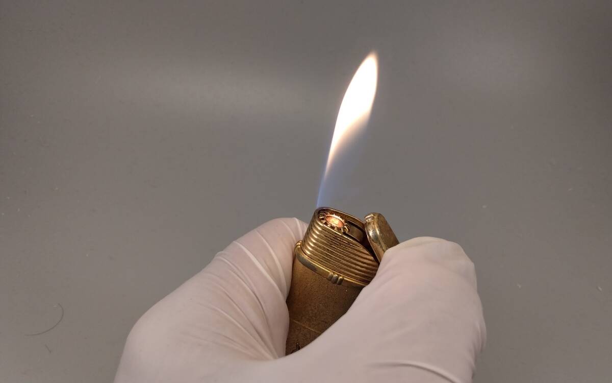 本品はメンテ済みゆえ正常に稼働します。着火未確認として出品されている本品同型品の殆どは、このガス管が詰まってるのでまず着火はしません。特殊な構造なのでご自身でメンテされることはお勧めしません。キャップ天面に傷あり。