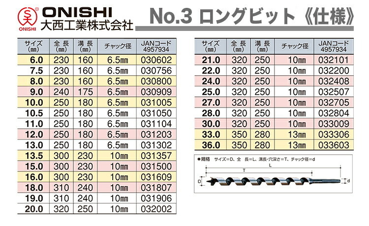 【オススメ】〈大西〉No.3 ロングビット 30mm