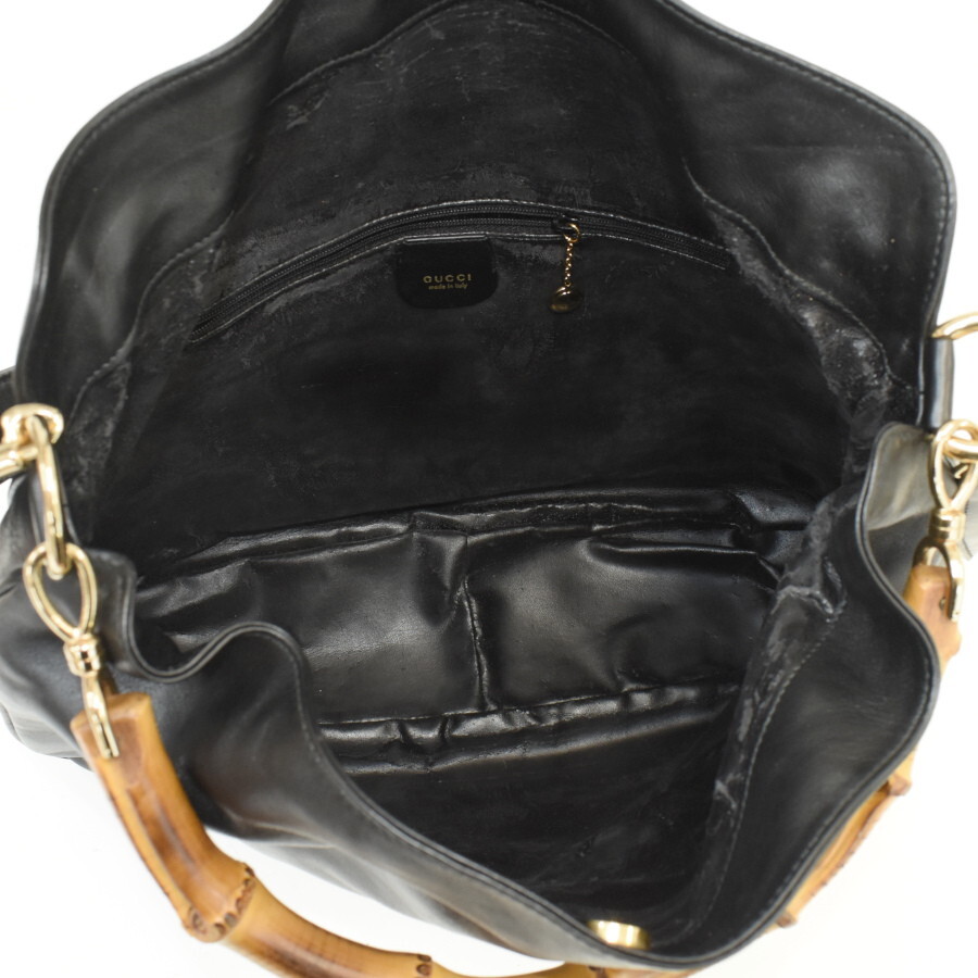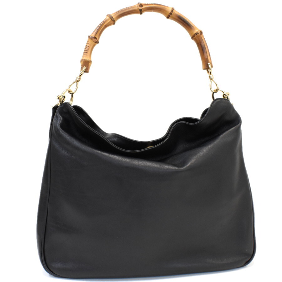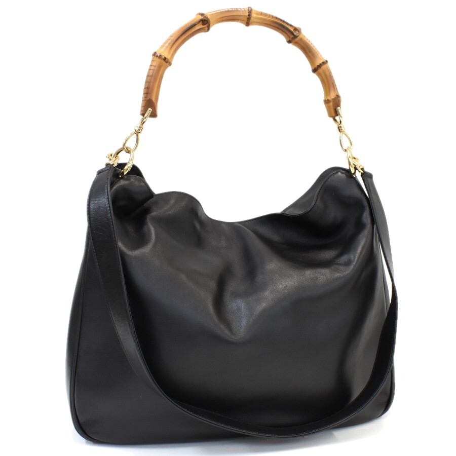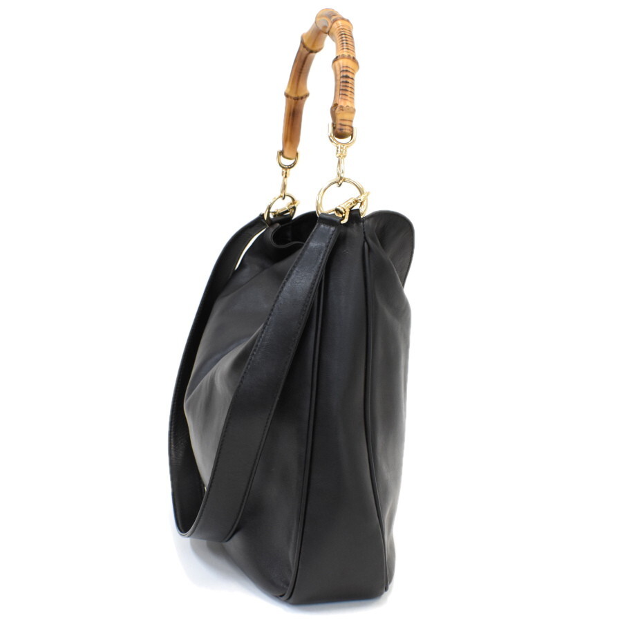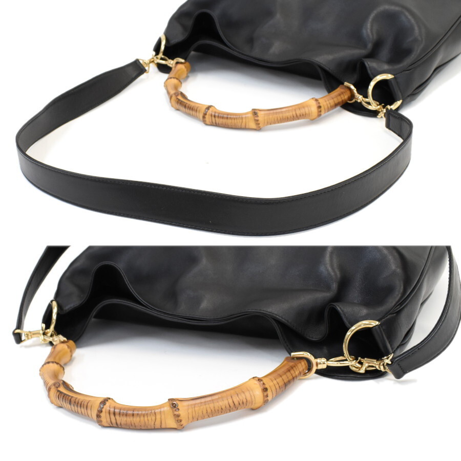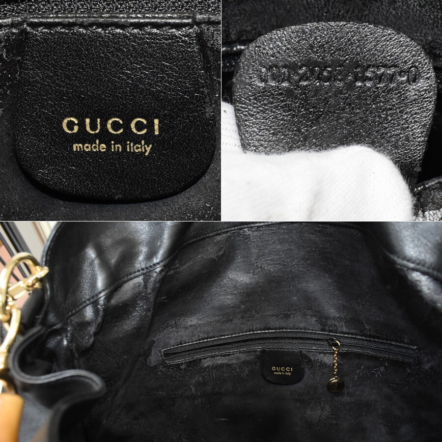 1円◆外側極美品/GUCCI/グッチ/2way/トートバッグ/ショルダー/001・2058・1577・0/バンブー/レザー/ブラック◆E.Bru.pD-05
