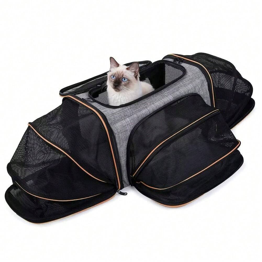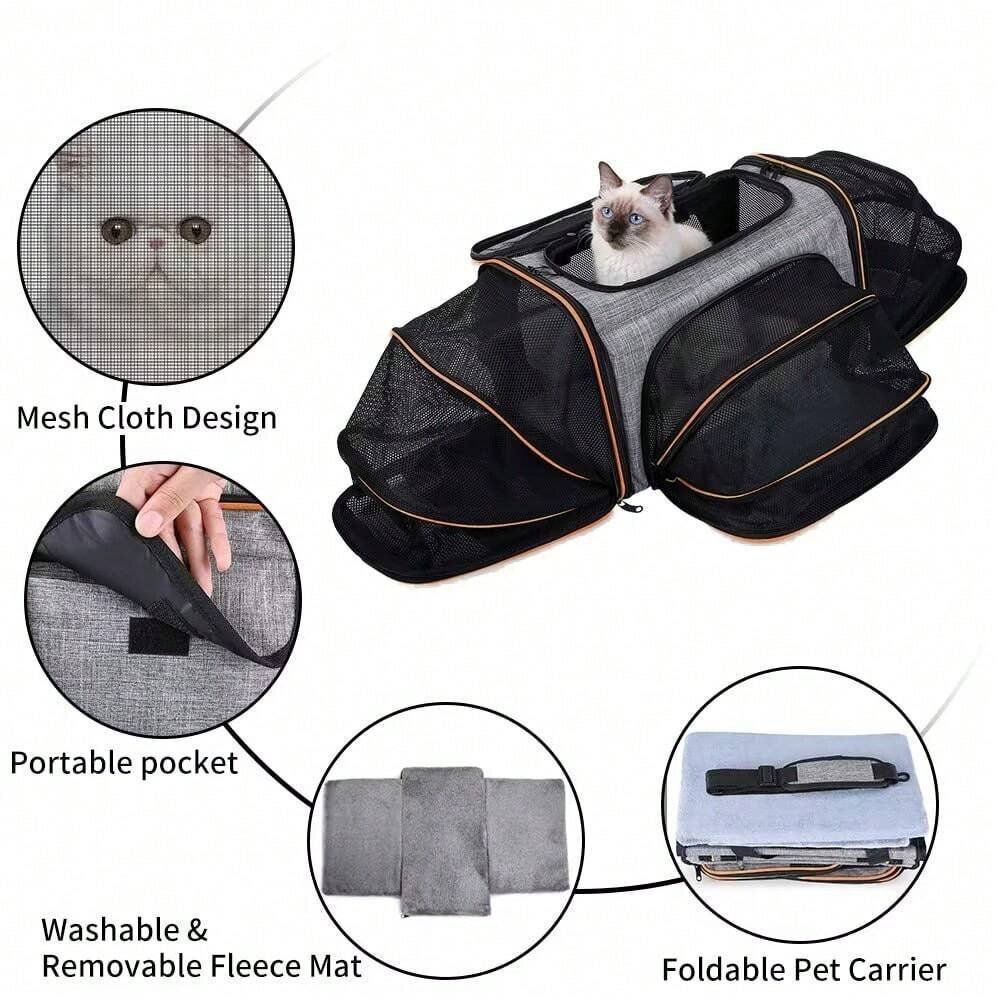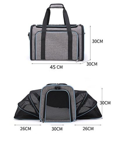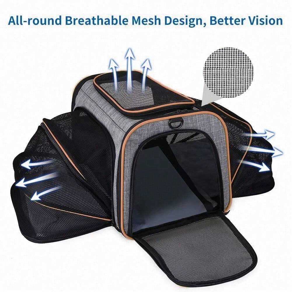 ペットキャリーバッグ リュック 通気性 4面拡張 軽量 飛行機可 フリースパッド付き 旅行 安定性 グレー 764