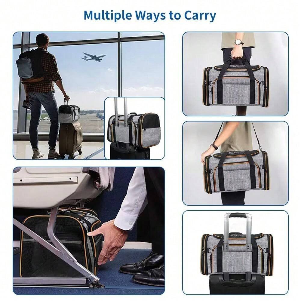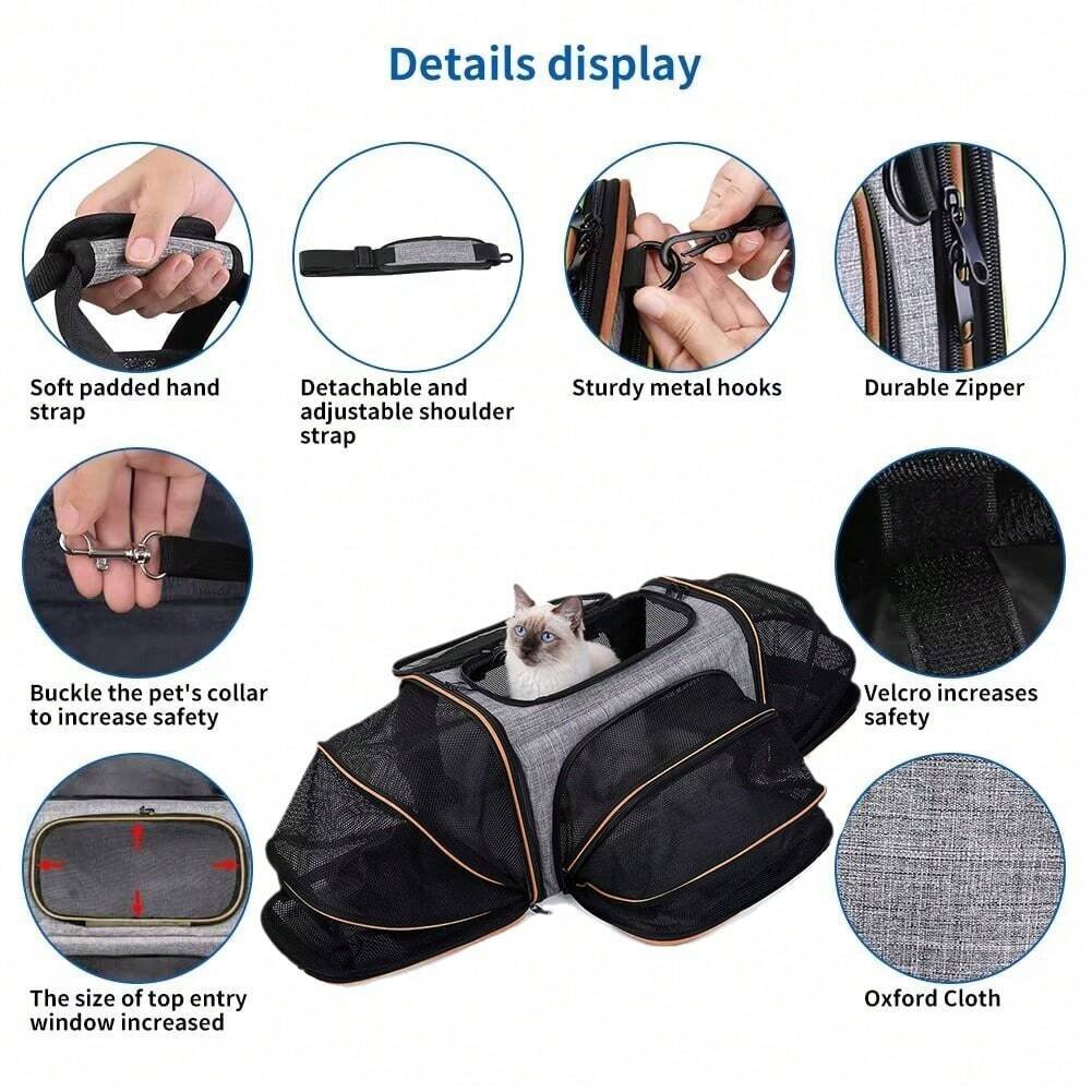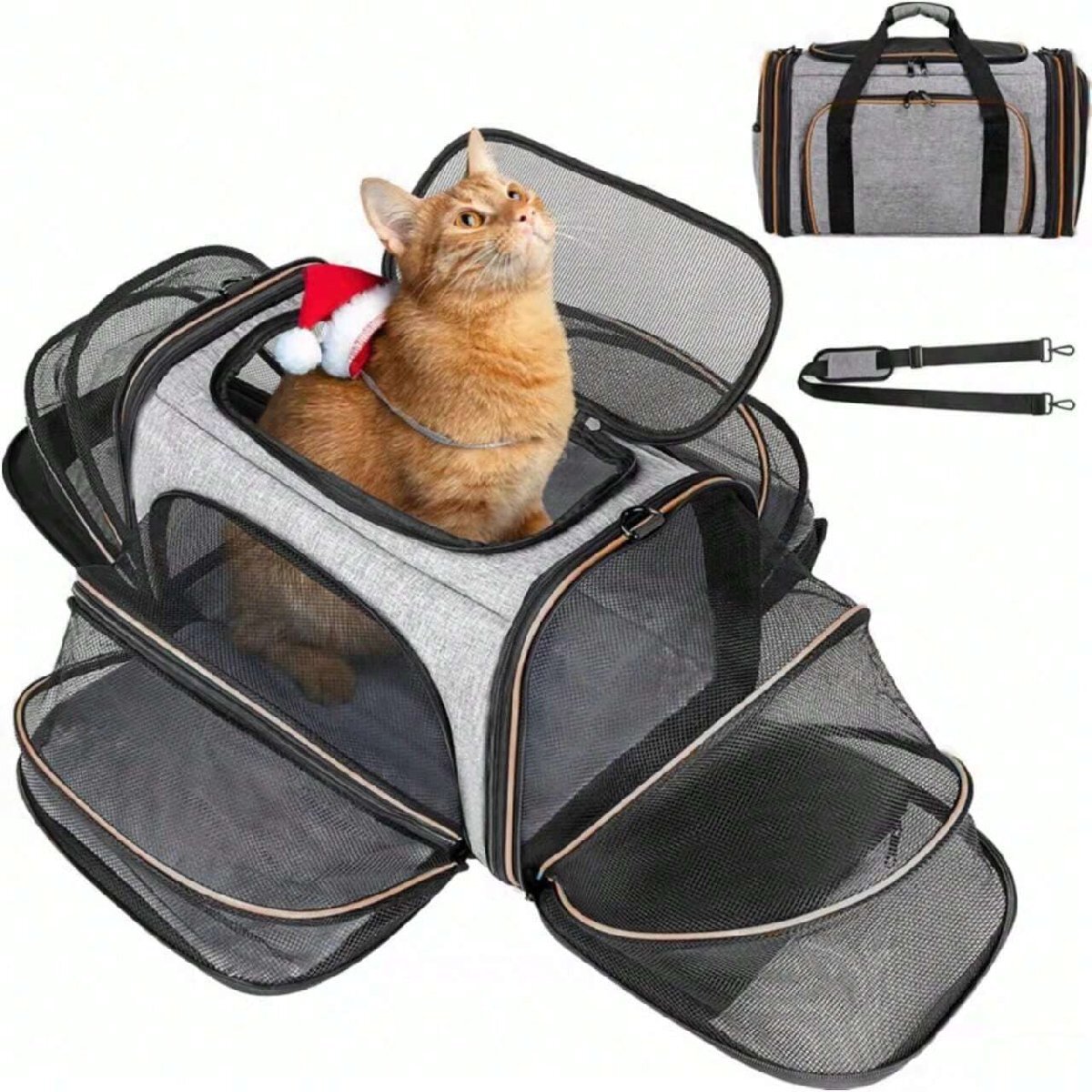 ペットキャリーバッグ リュック 通気性 4面拡張 軽量 飛行機可 フリースパッド付き 旅行 安定性 グレー 764