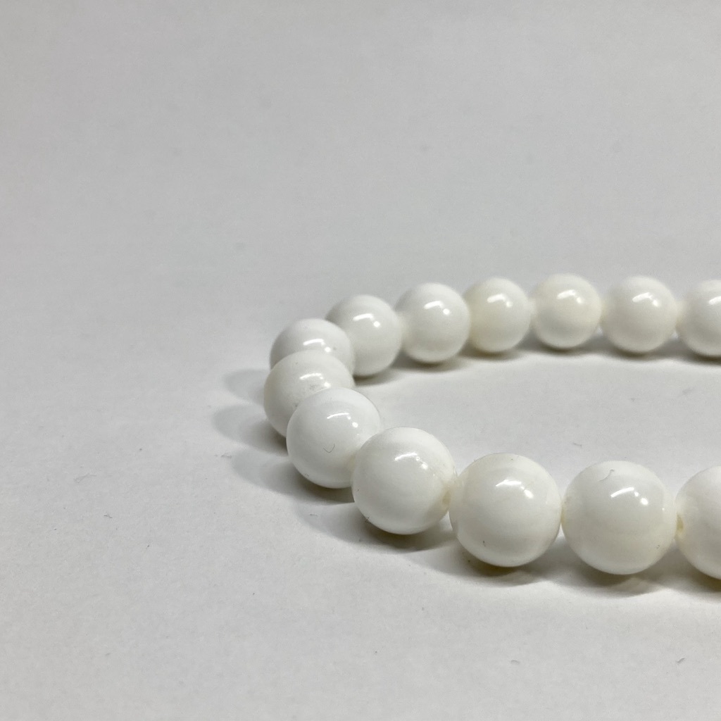 こちらは、ホワイトオニキスの10mm玉を使用したパワーストーンブレスレットです。シンプルなデザインですのでどんなコーディネートとも合わせ易いブレスレットです。サイズは内周約17cmです。(サイズ変更の場合は取引ナビにてご連絡をお願いします。) 数に限りがございますので気になる方はお早めにどうぞ。