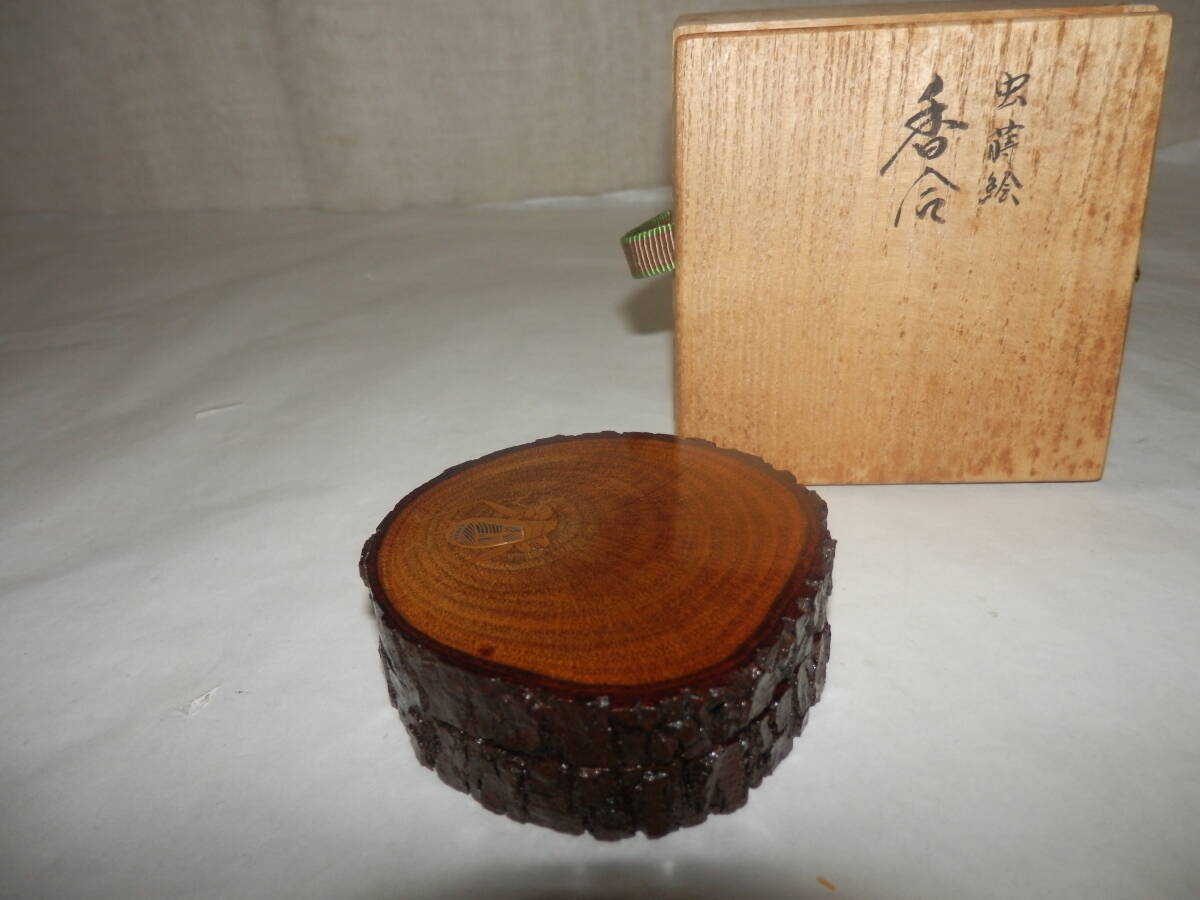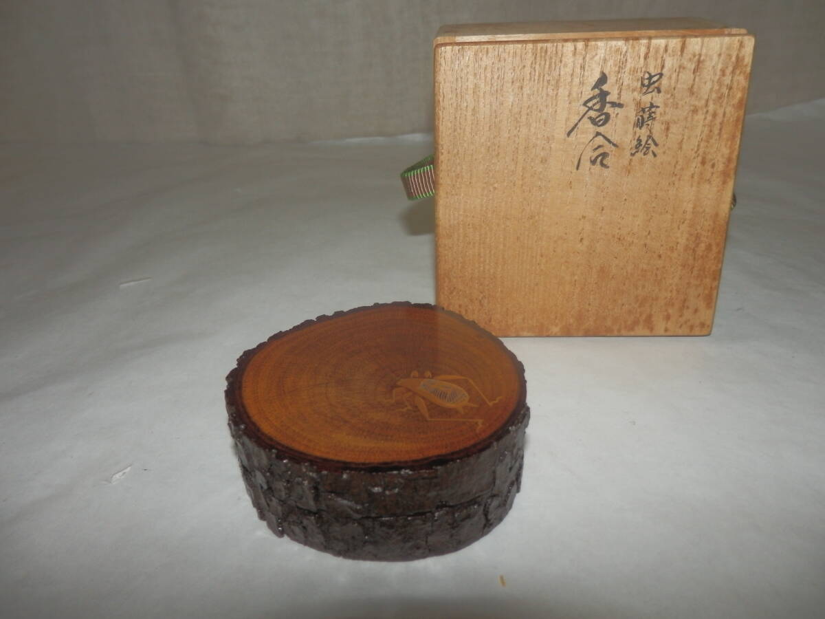 「茶道具」石川県の山中の塗師の新谷漆峯さんの香合です。虫蒔絵です。最大径約7.4cm 高さ約2.6cm 桐共箱「ヤケ、シミ等有」。どうぞ宜しく。