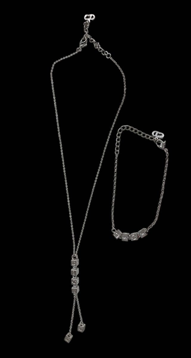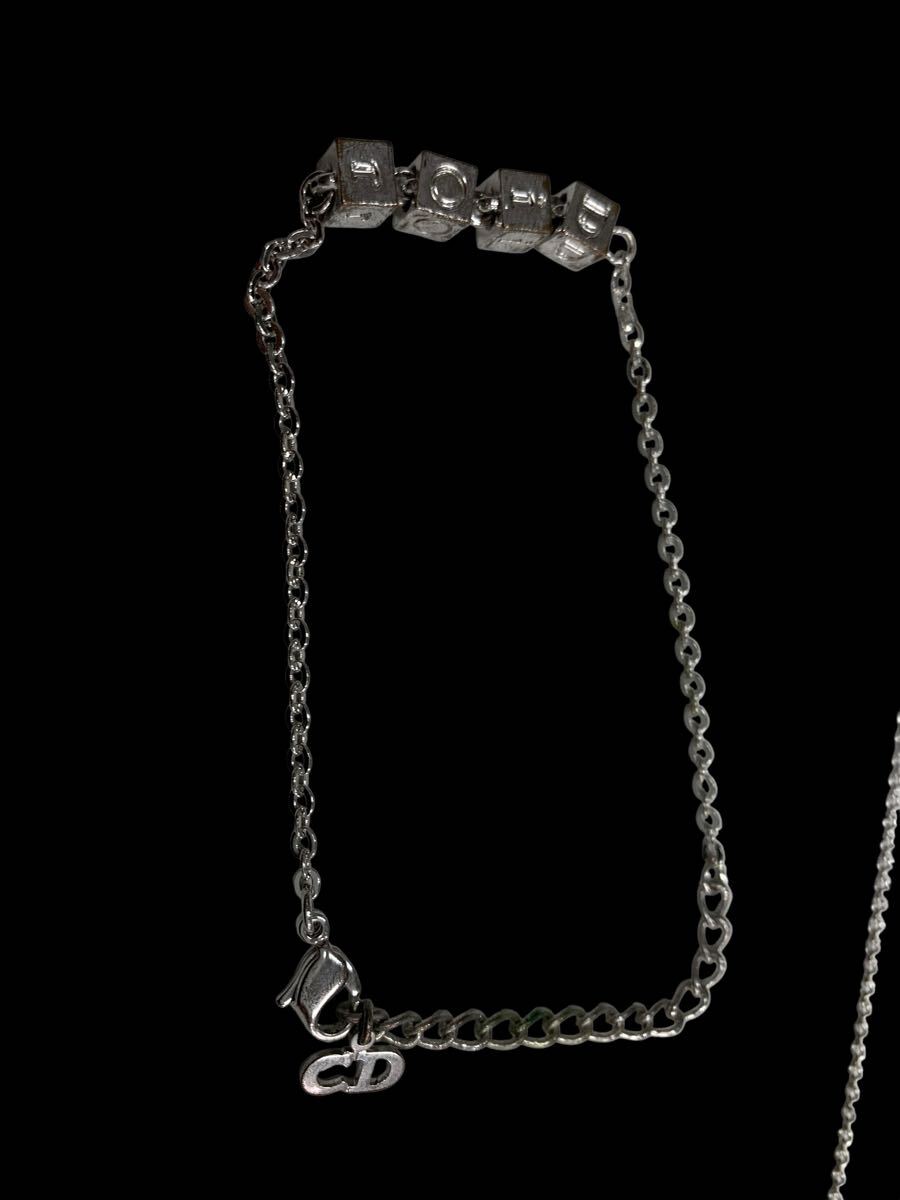 1円スタート 4603 Christian Dior ロゴキューブ クリスチャンディオール ネックレス ブレスレット シルバーカラー