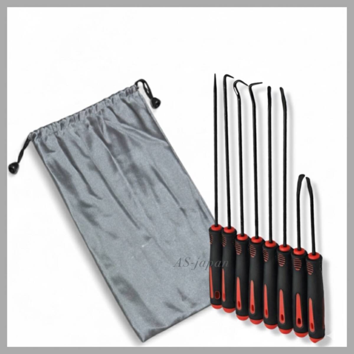 [8本セット]オイルシールリムーバー ピック フック ツール セット バイク / 自動車 / 整備 工具 DIY レストア 修理 オーバーホール (赤