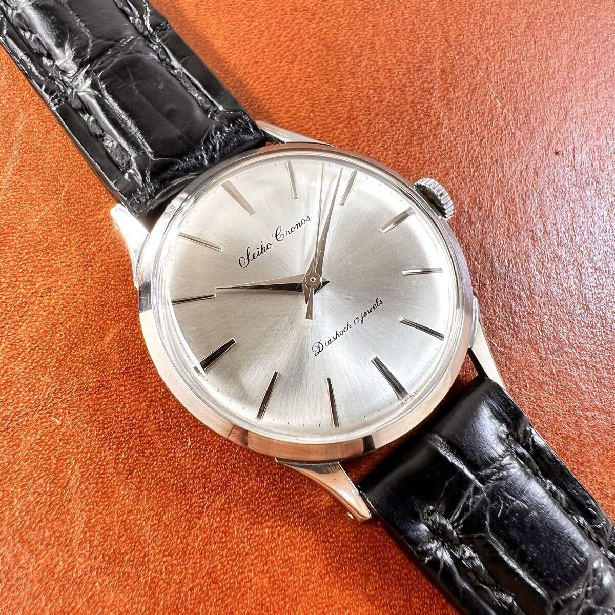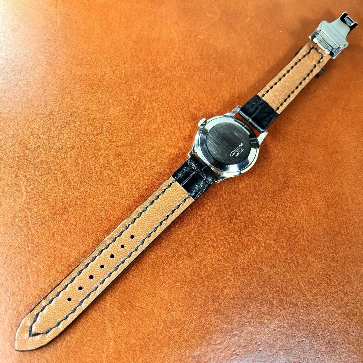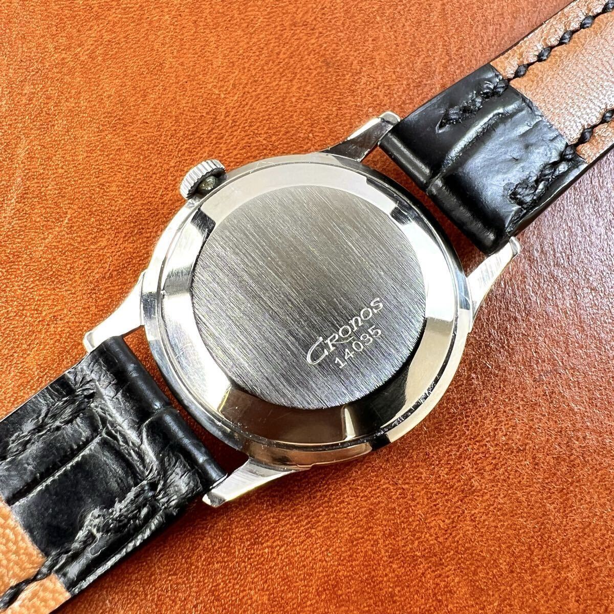 OH済! 極上美品! SEIKO Cronos 17石 クロコダイル本革手縫いベルト Dバックル付 セイコー クロノス 14035 SS 手巻 国産 ビンテージ 腕時計