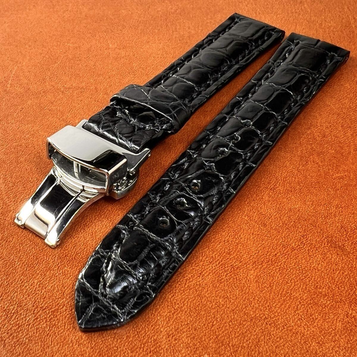 *竹斑模様が美しい良質なクロコダイル本革を使用しています。色は半ツヤありのブラック。裏革はライトブラウンで、縫い糸は黒色。