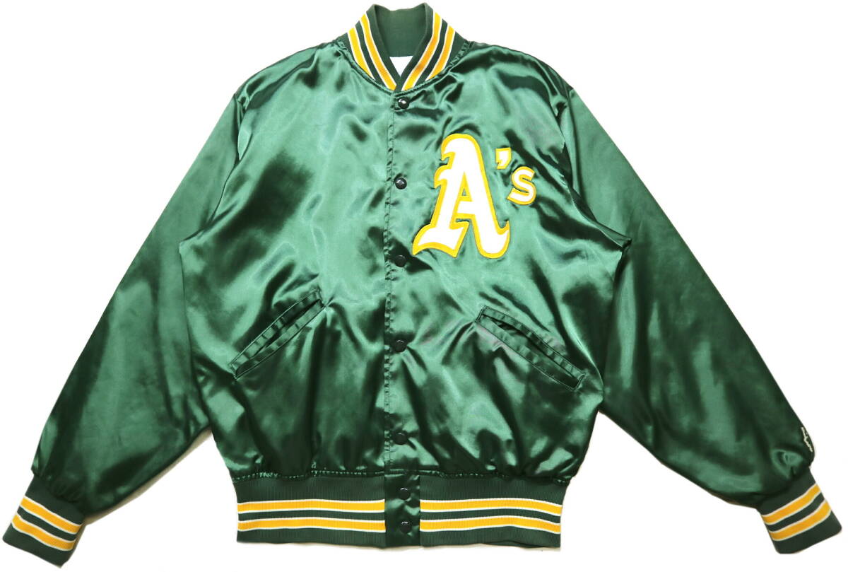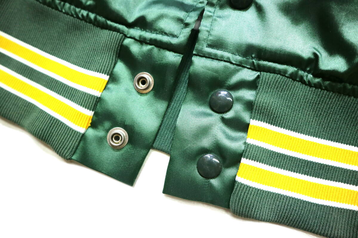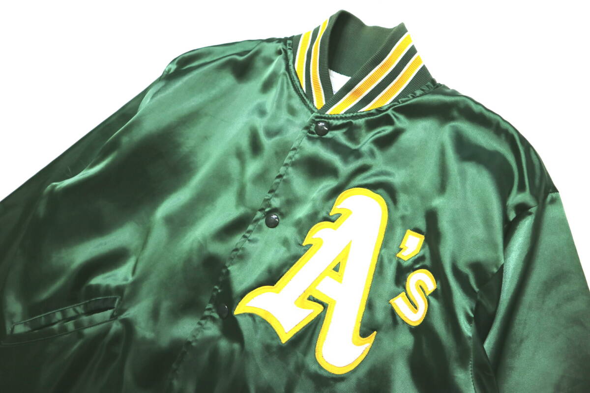 程度良好!◆米国製 FELCO MLB オークランドアスレチックス 起毛裏地 ナイロンスタジャン◆Lサイズ相当(表記M)