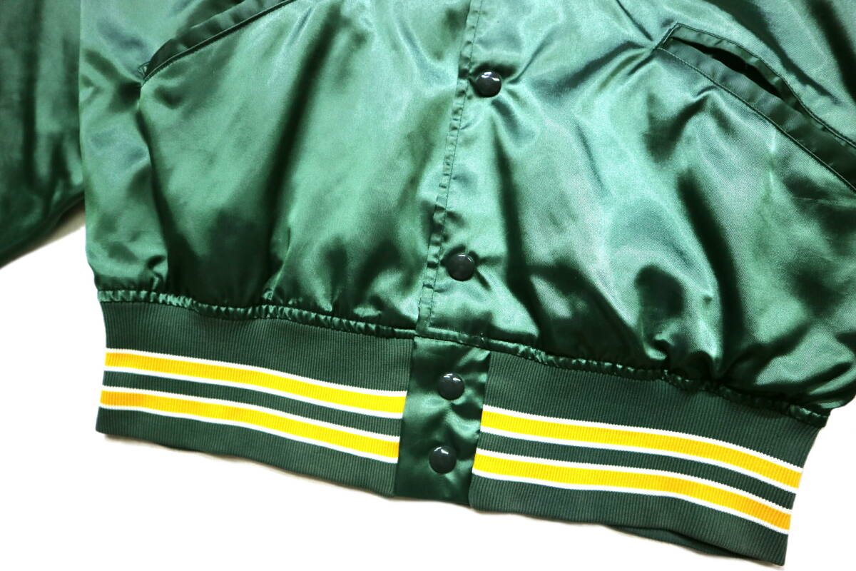 程度良好!◆米国製 FELCO MLB オークランドアスレチックス 起毛裏地 ナイロンスタジャン◆Lサイズ相当(表記M:身長175-177センチ位)