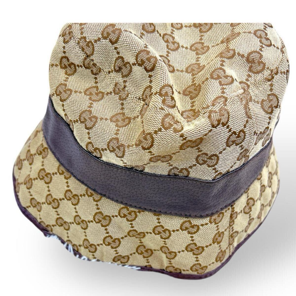 【アイテム】バケットハット(総柄GG × レザーバンド/ダブルGゴールド金具)