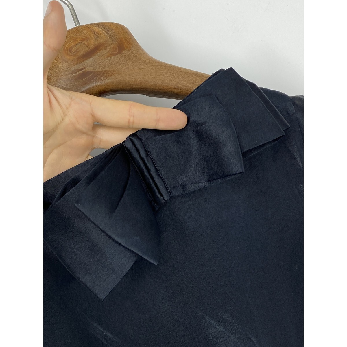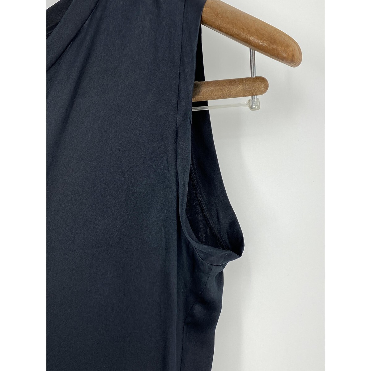 A8394/春夏 Yves Saint Laurent イヴ・サンローラン シルク100% リボン付き 無地 ノースリーブ Tシャツ カットソー 34 XS程 黒/レディース