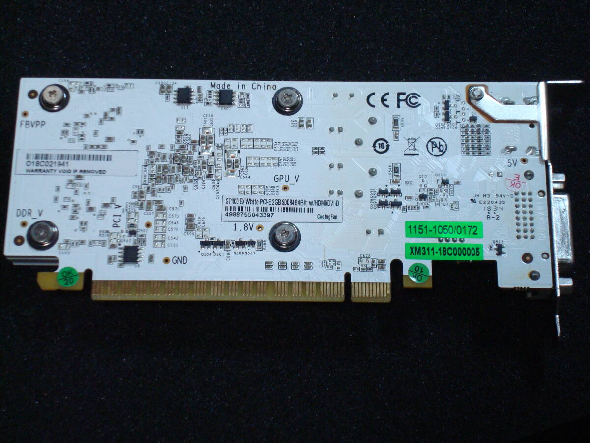 玄人志向 補助電源不要 GT1030 EX White PCI-E 2GB SDDR4 64Bit HDMI/DVI-D 完動品