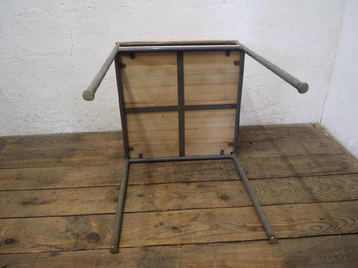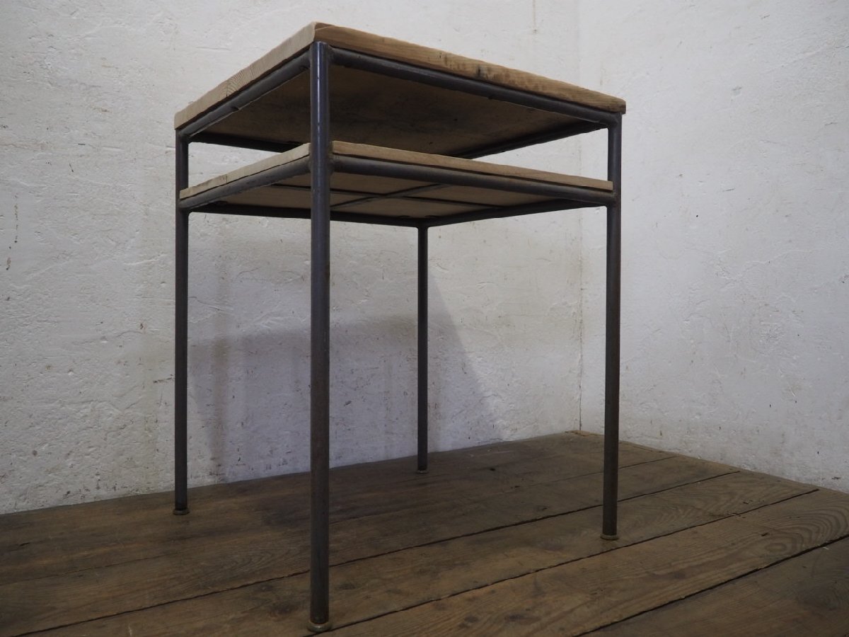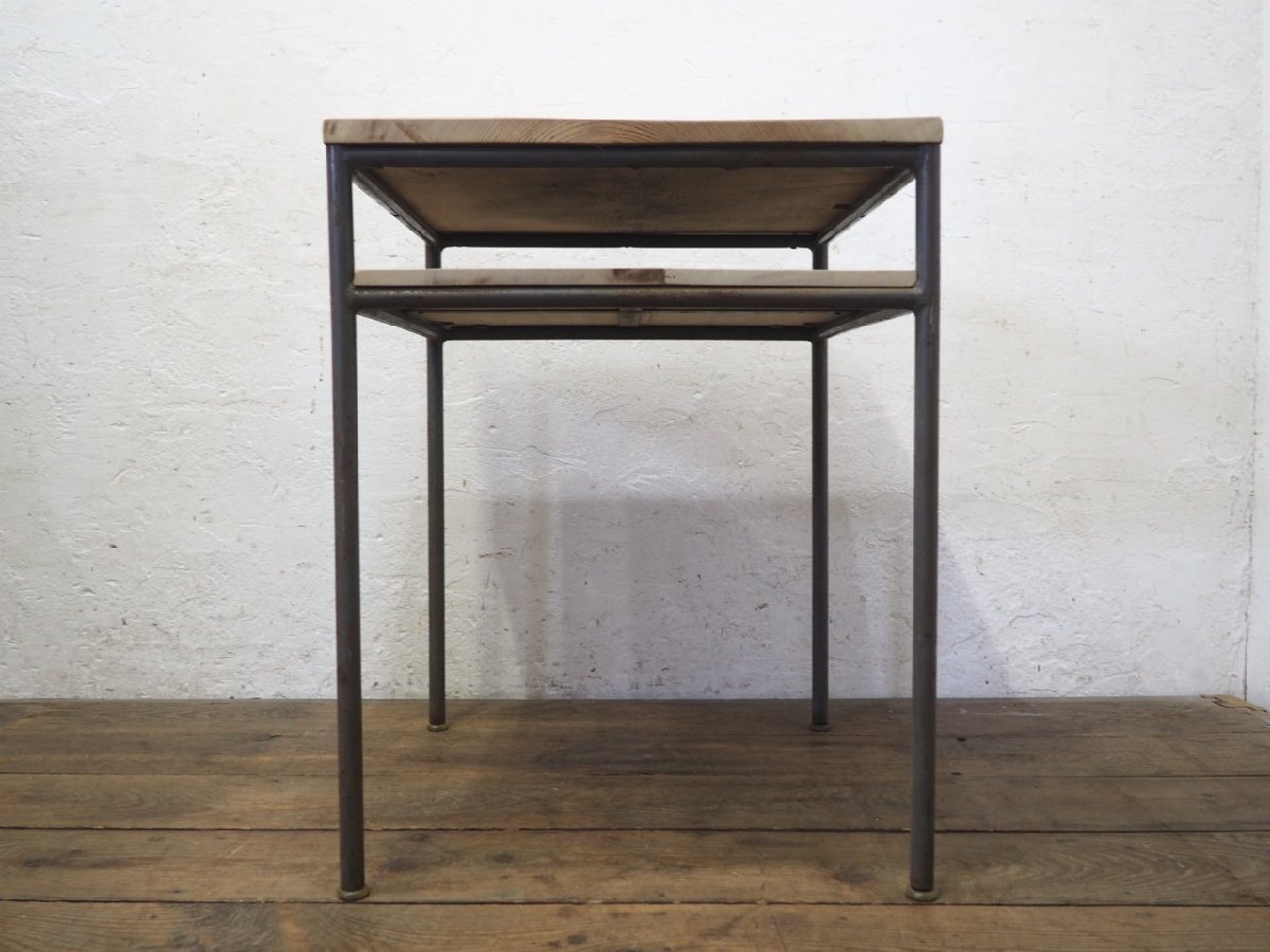 タ荷Q0976◆①天板W55cm×D54,5cm◆ヴィンテージ◆レトロな古い鉄脚テーブル◆工業系 作業台 デスク インダストリアル アイアンL(ヤB)庭
