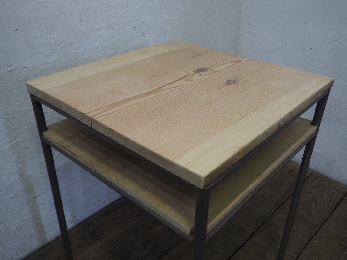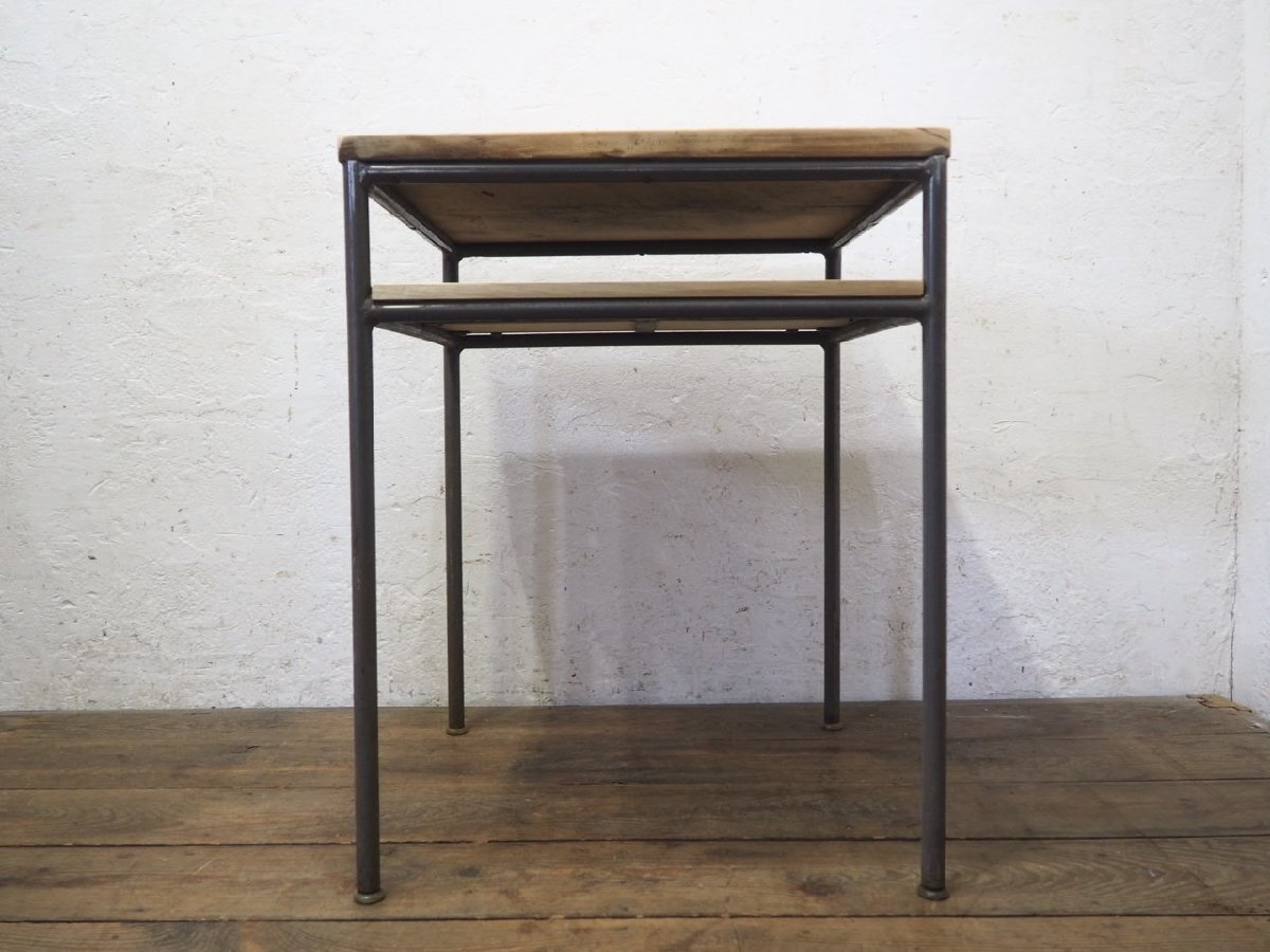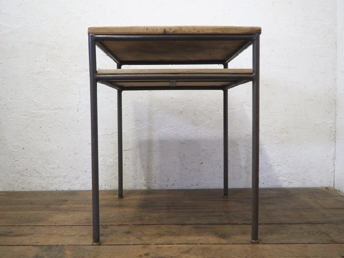 タ荷Q0976◆①天板W55cm×D54,5cm◆ヴィンテージ◆レトロな古い鉄脚テーブル◆工業系 作業台 デスク インダストリアル アイアンL(ヤB)庭