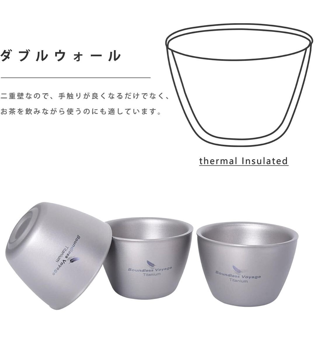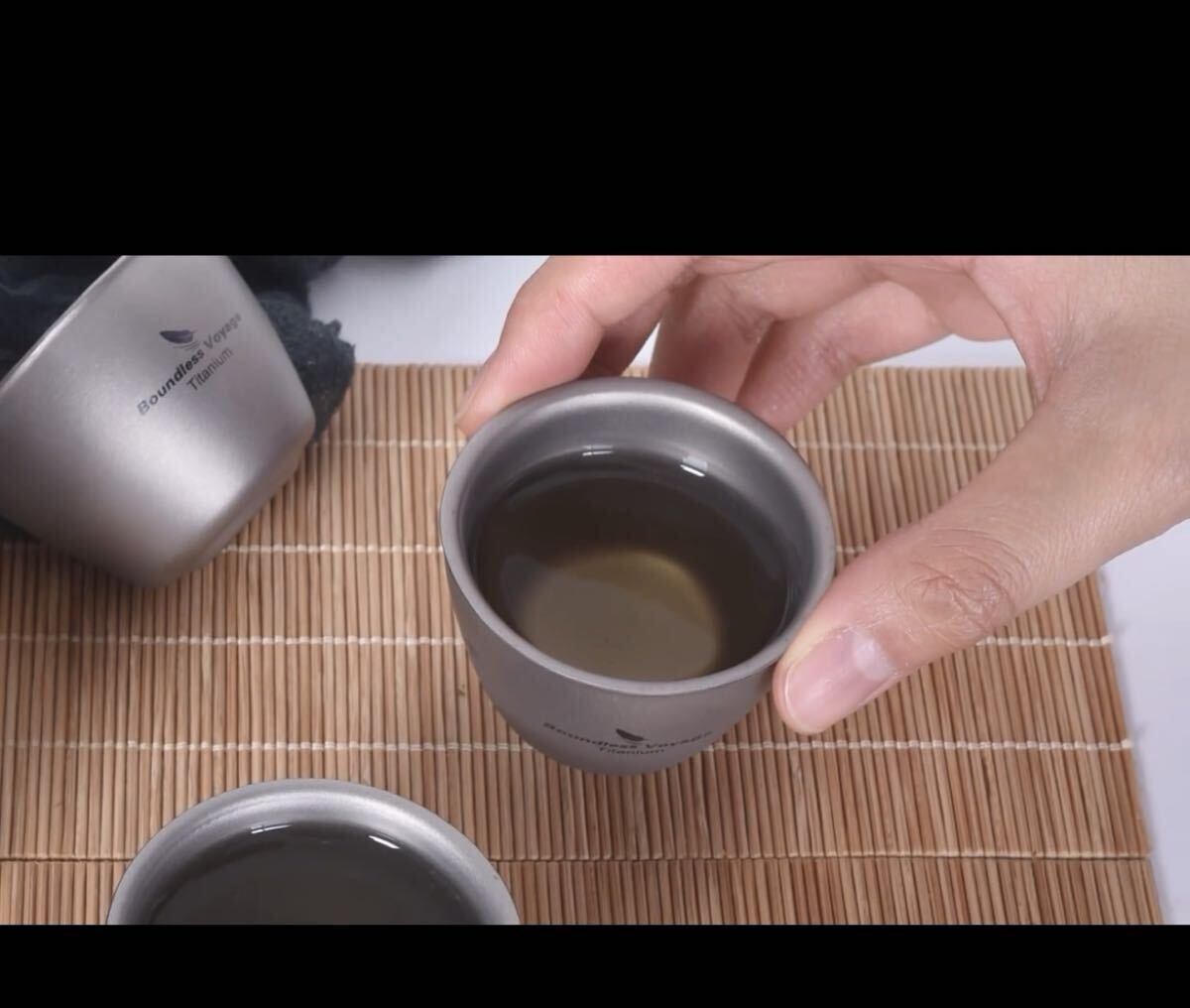 二重壁のチタン製で、お茶によるやけどを防ぎ、猪口としても使用できます。