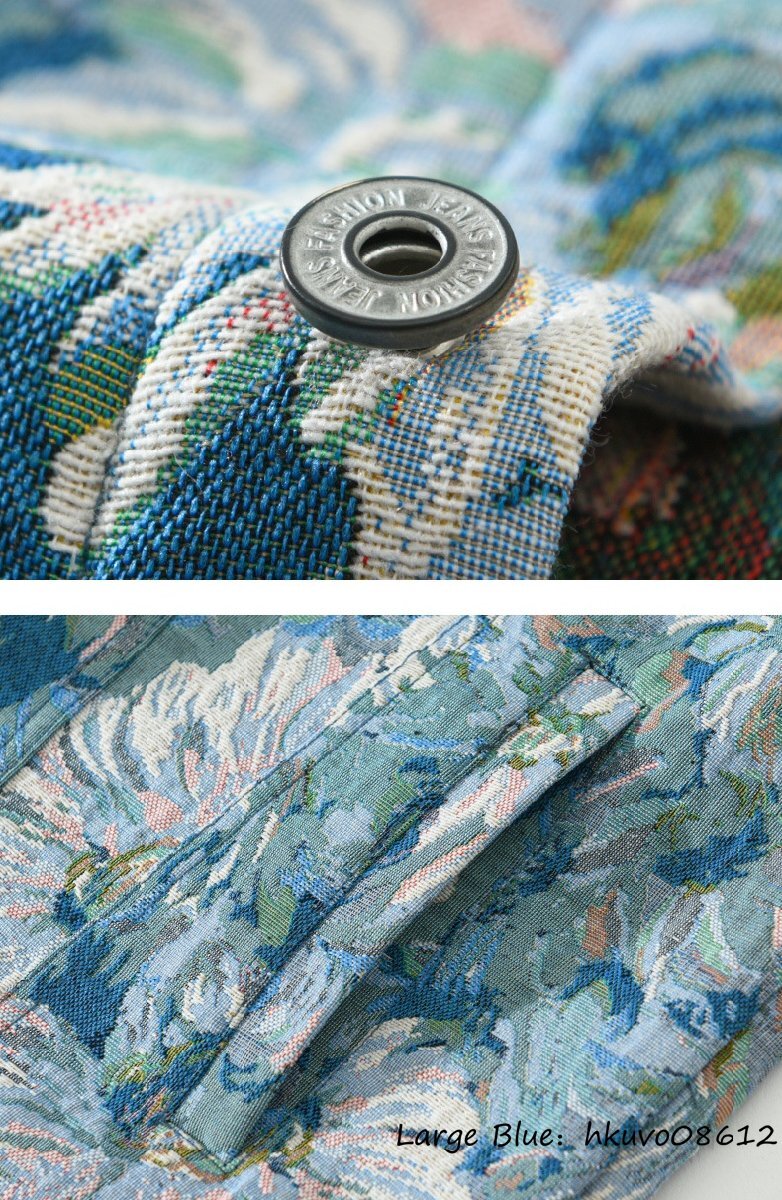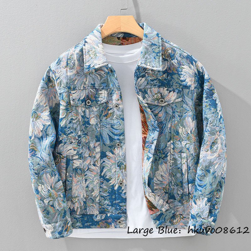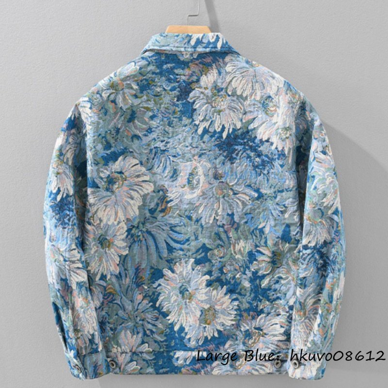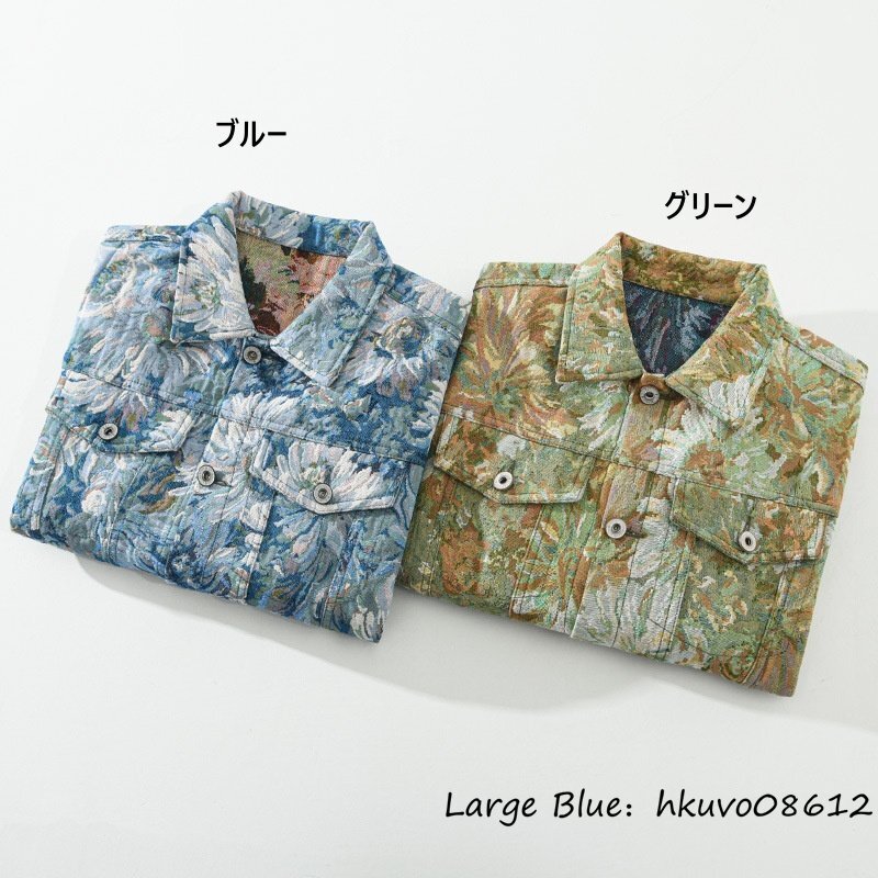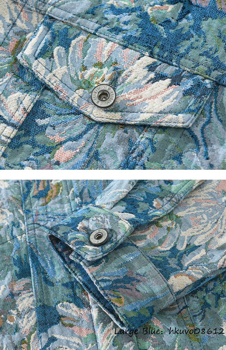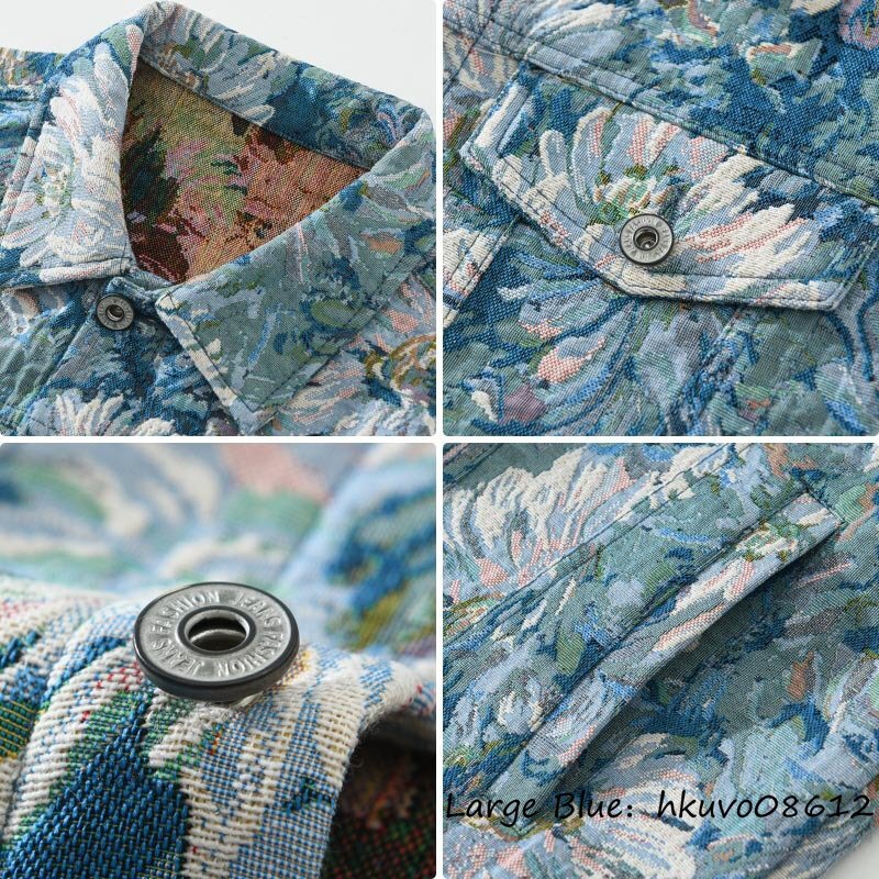 高級*新品 デニムジャケット メンズ 総柄 ジャンバー ブルゾン 長袖シャツ デニムシャツ 秋冬 アウター 個性 シャツジャケット ブルー XL